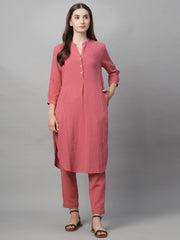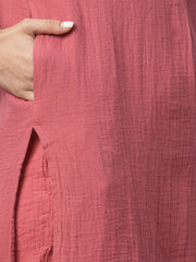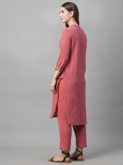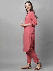 Women's Pink Cotton Regular Fit Kurta