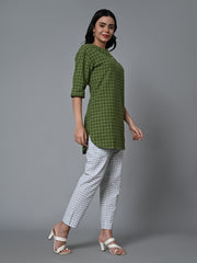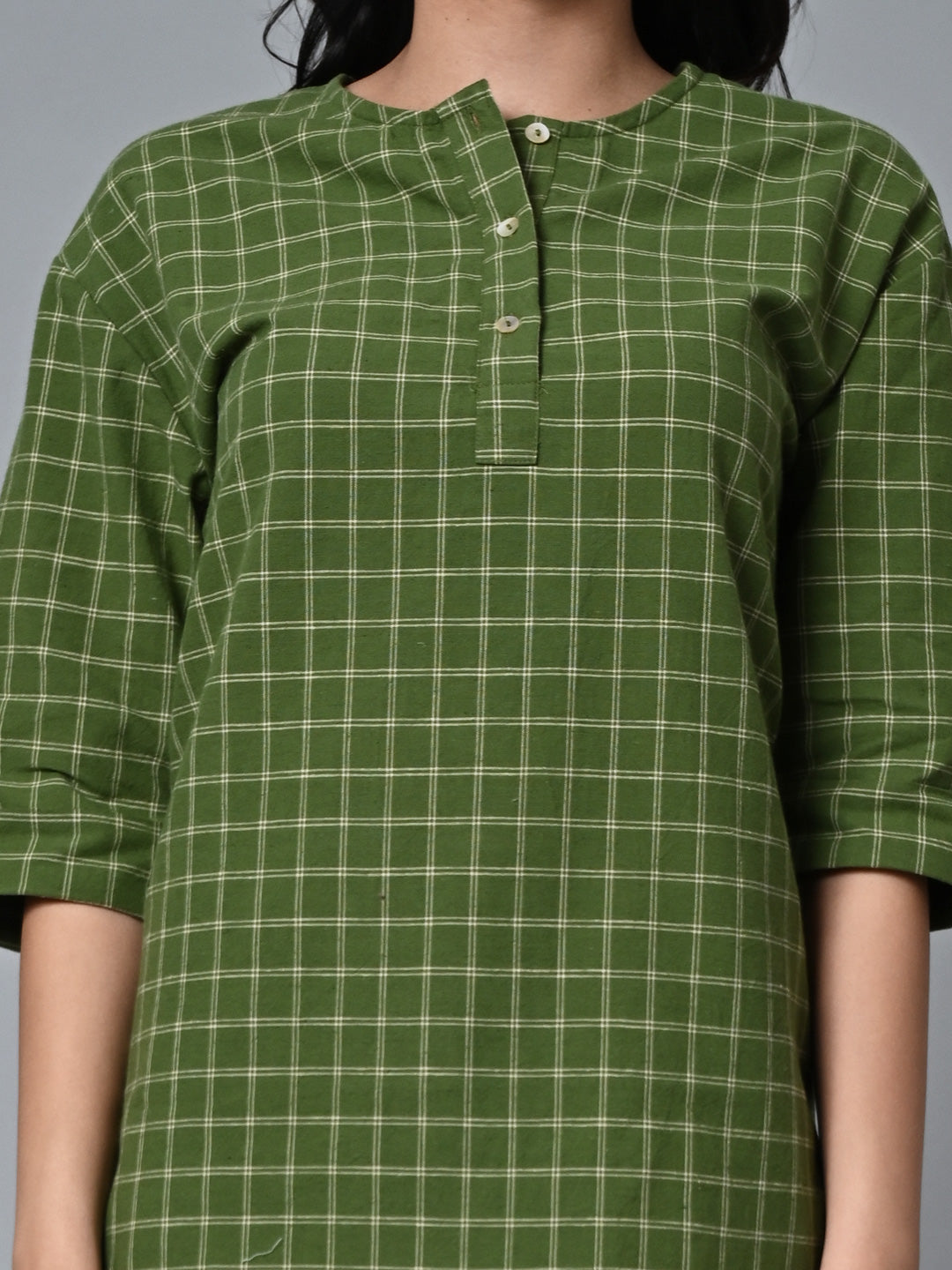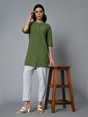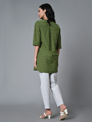Women's Green Cotton Linen Regular Fit Kurta