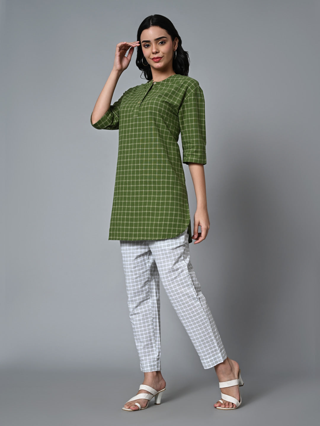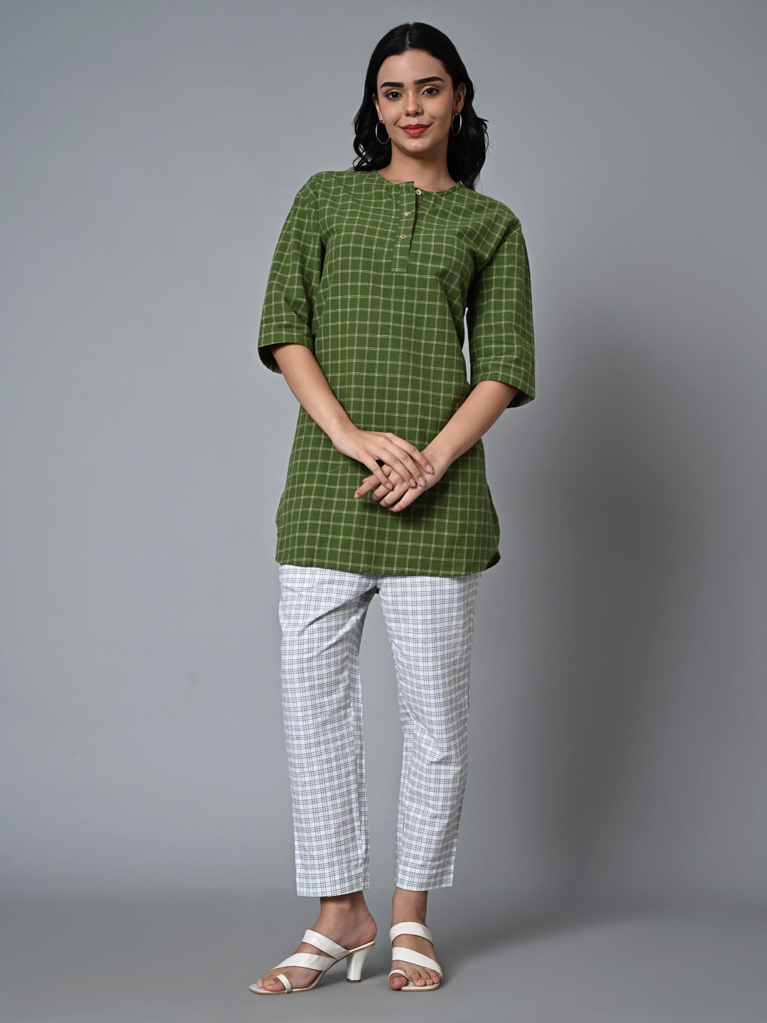 - FABRIC COMPOSITION: 90% COTTON 10% LINEN CHECK WOVEN