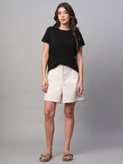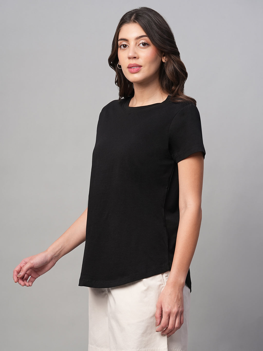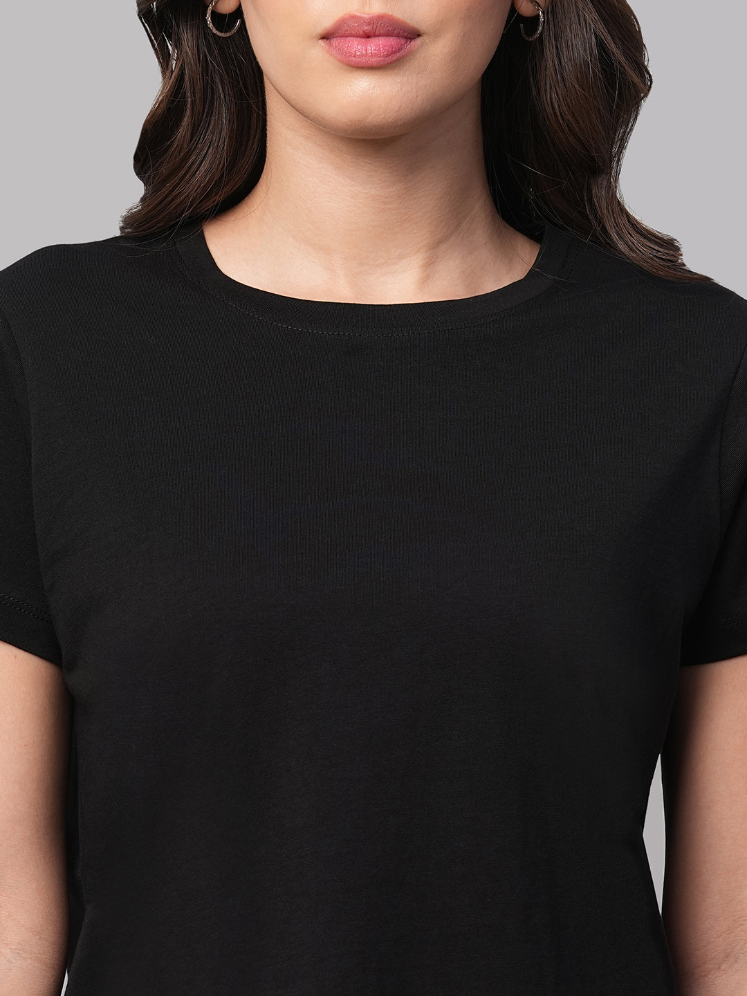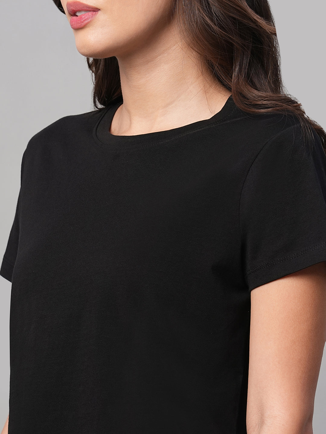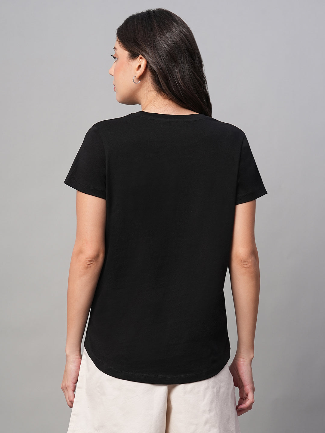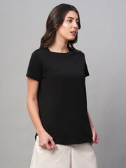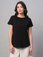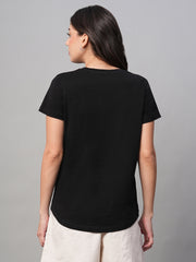 Women's Black 100% Cotton Regular Fit Tshirt