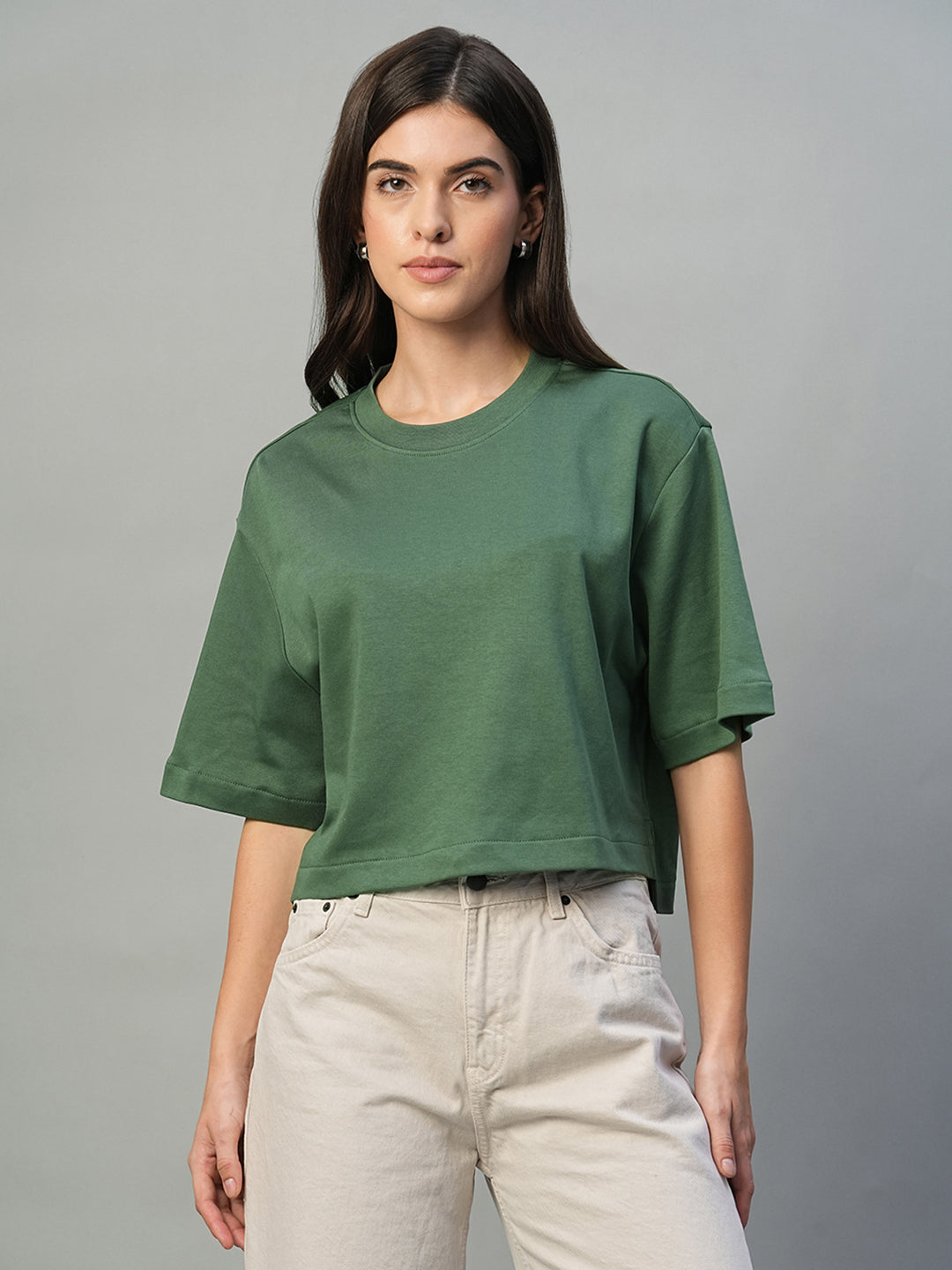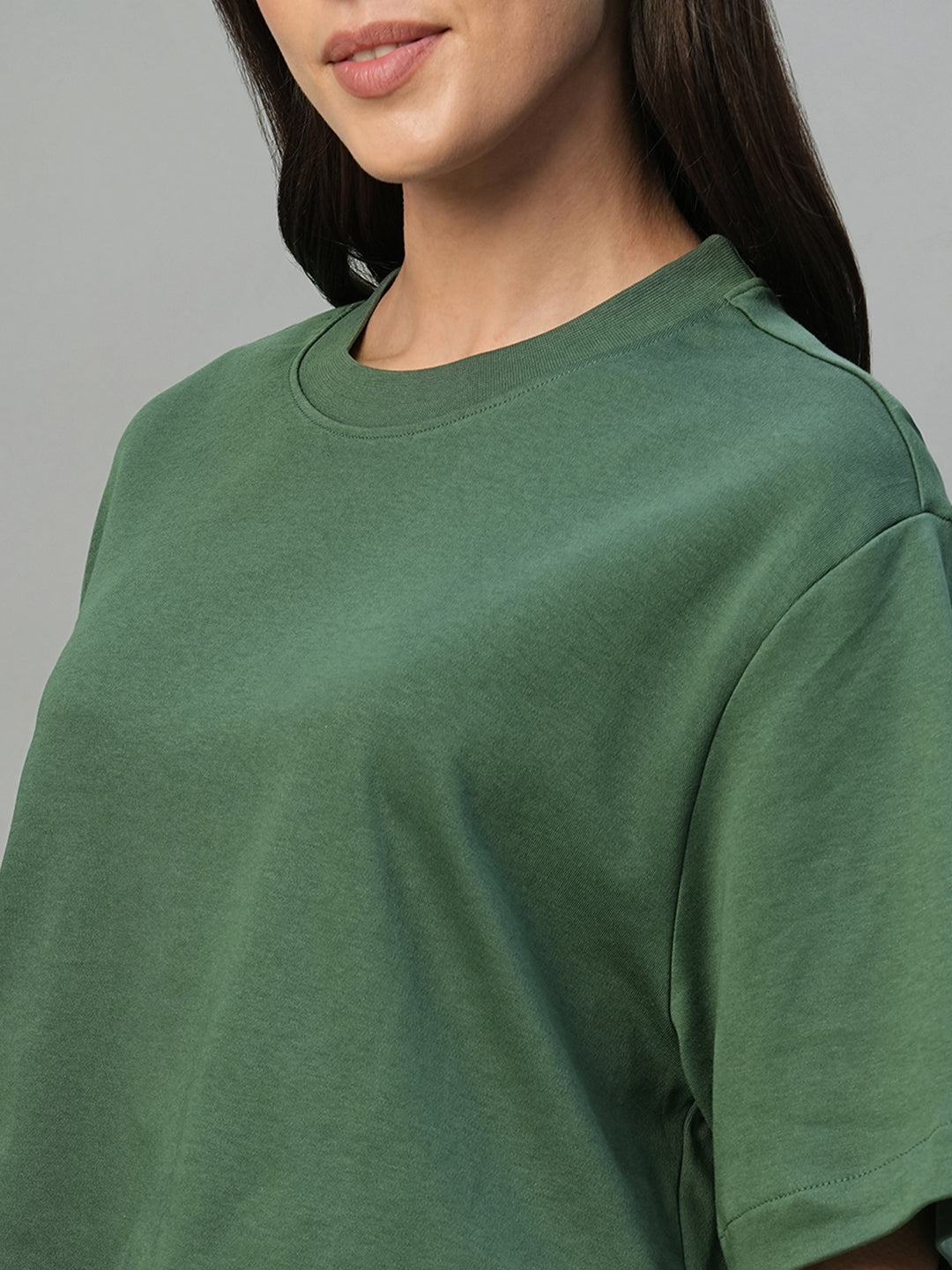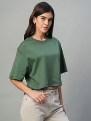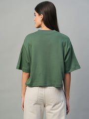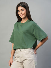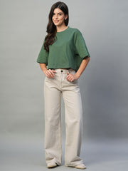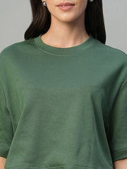 Women's Olive 100% Cotton Boxy Fit Tshirt
