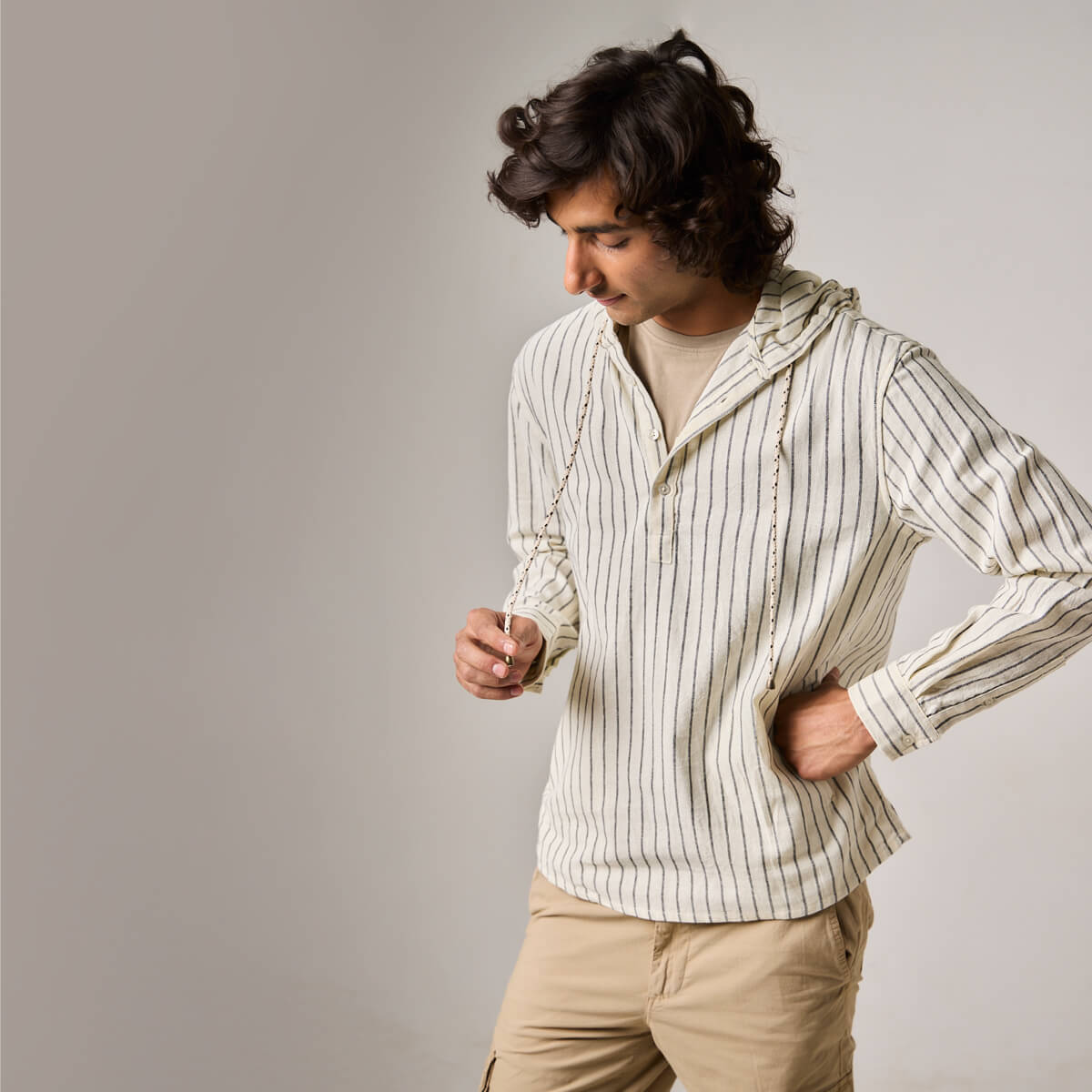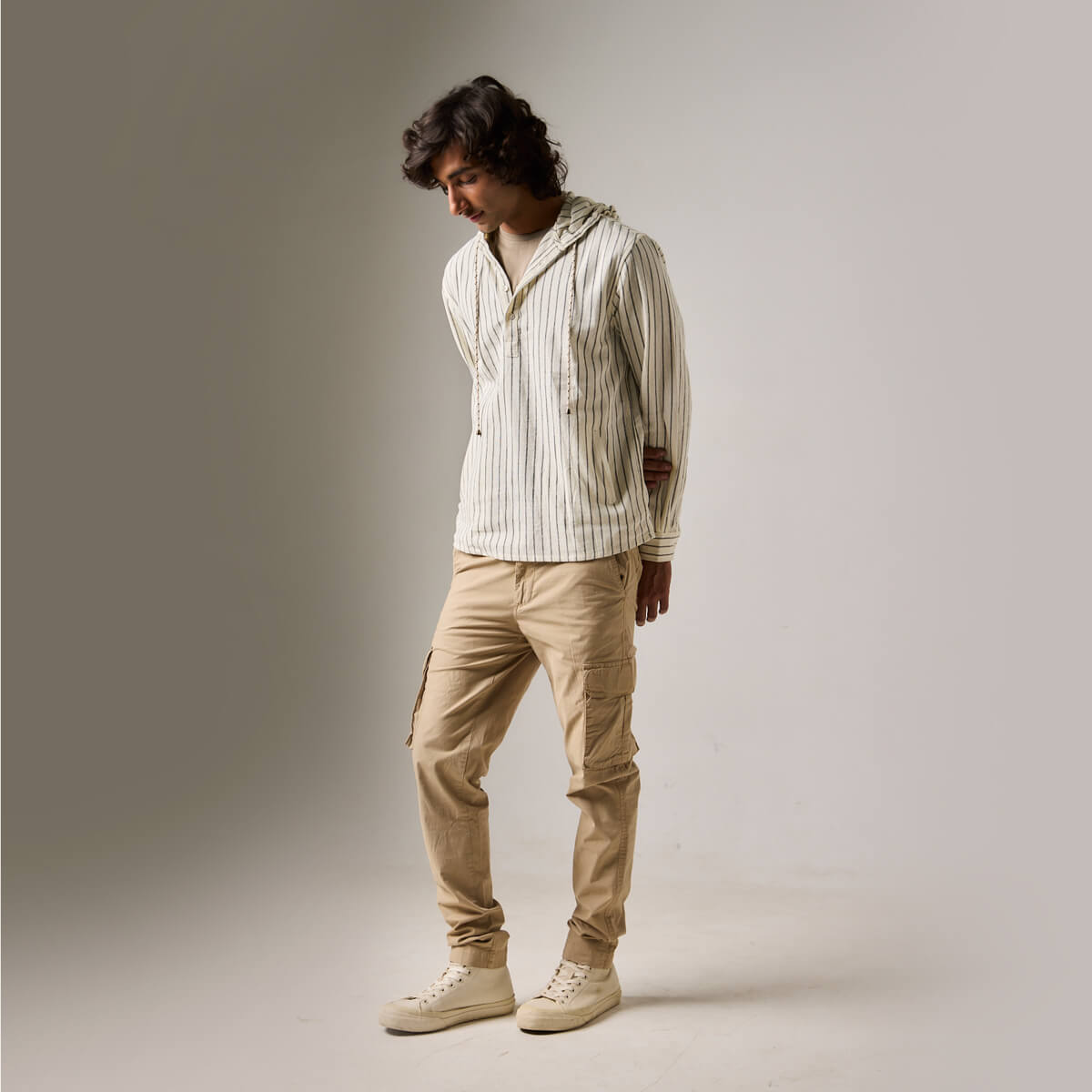 A 100% cotton hoodie shirt brings breathable comfort with a laid-back edge, paired with functional cargo pants designed for movement and utility.
