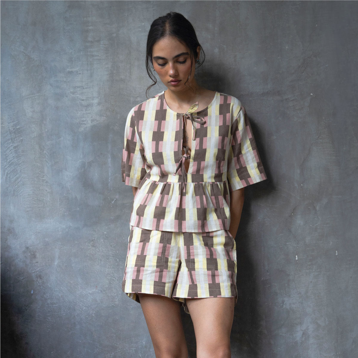 A cotton-flax printed woven top—the perfect mix of softness, structure, and effortless style.