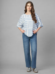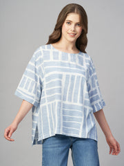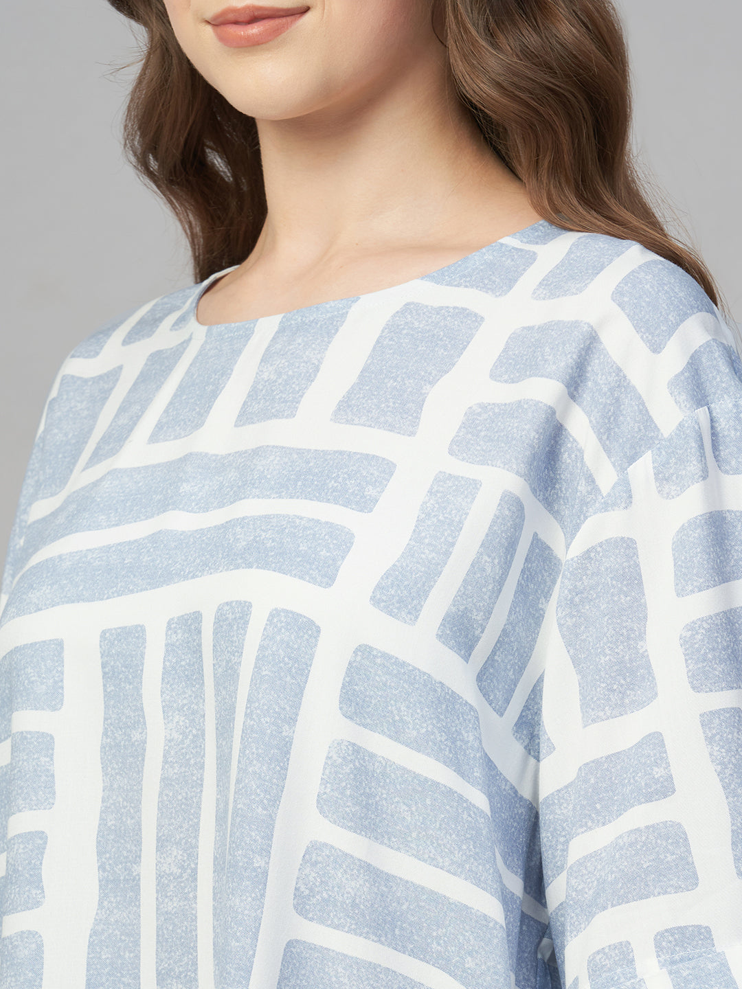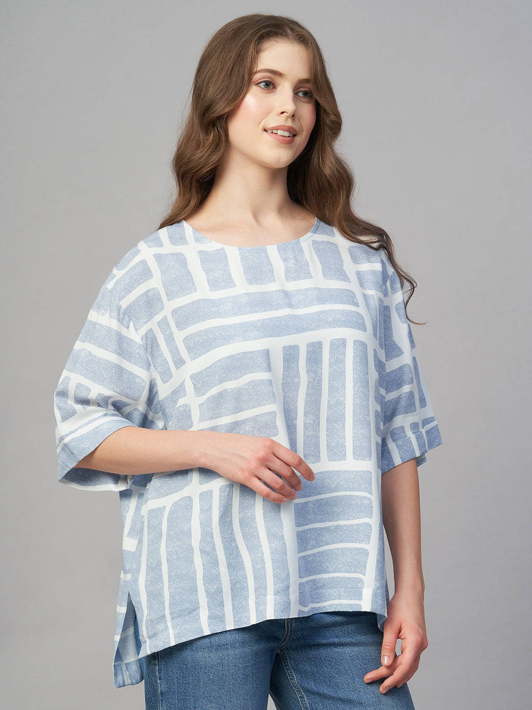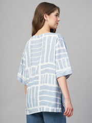 Women's Blue 100% Viscose Boxy Fit Blouse