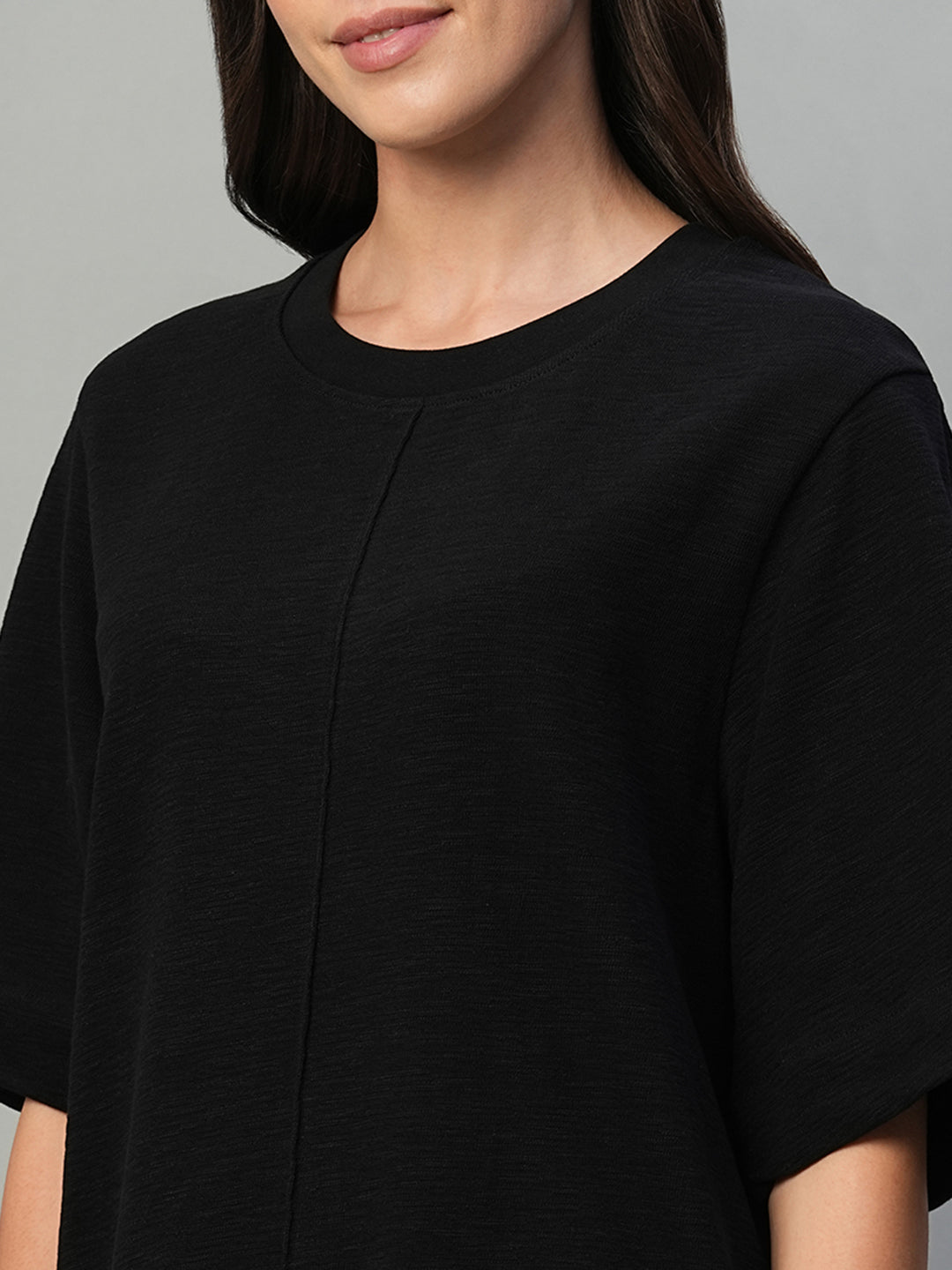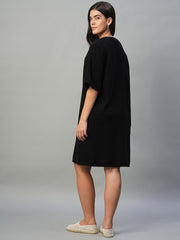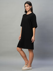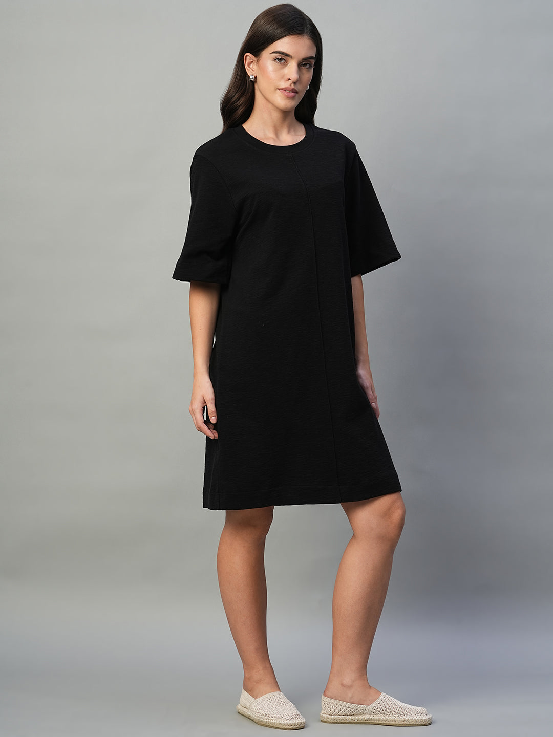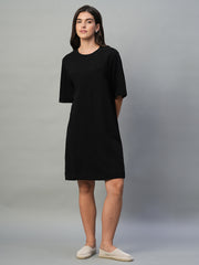 Women's Black 100% Cotton Regular Fit Knit Dress