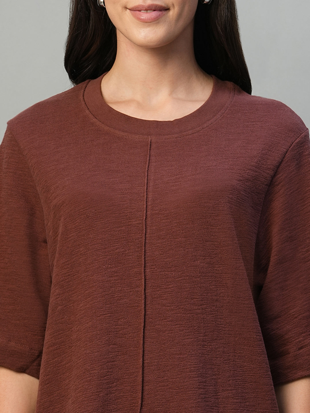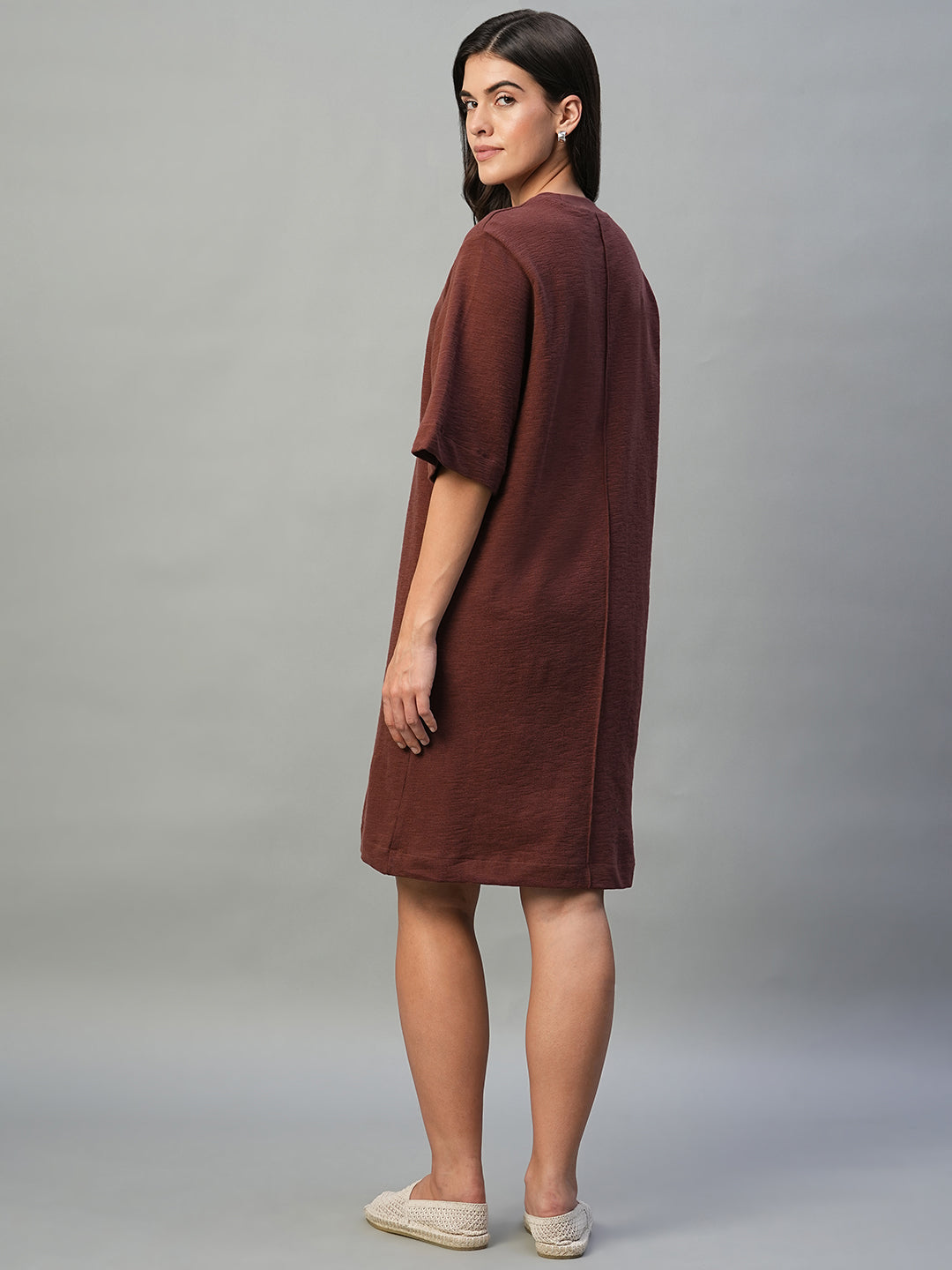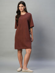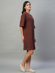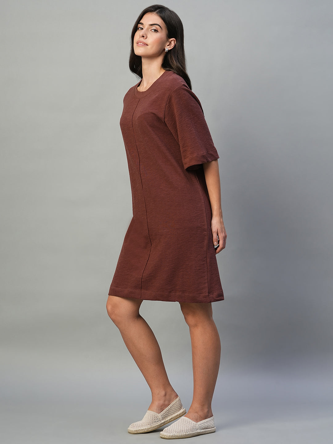 Women's Wine 100% Cotton Regular Fit Knit Dress