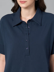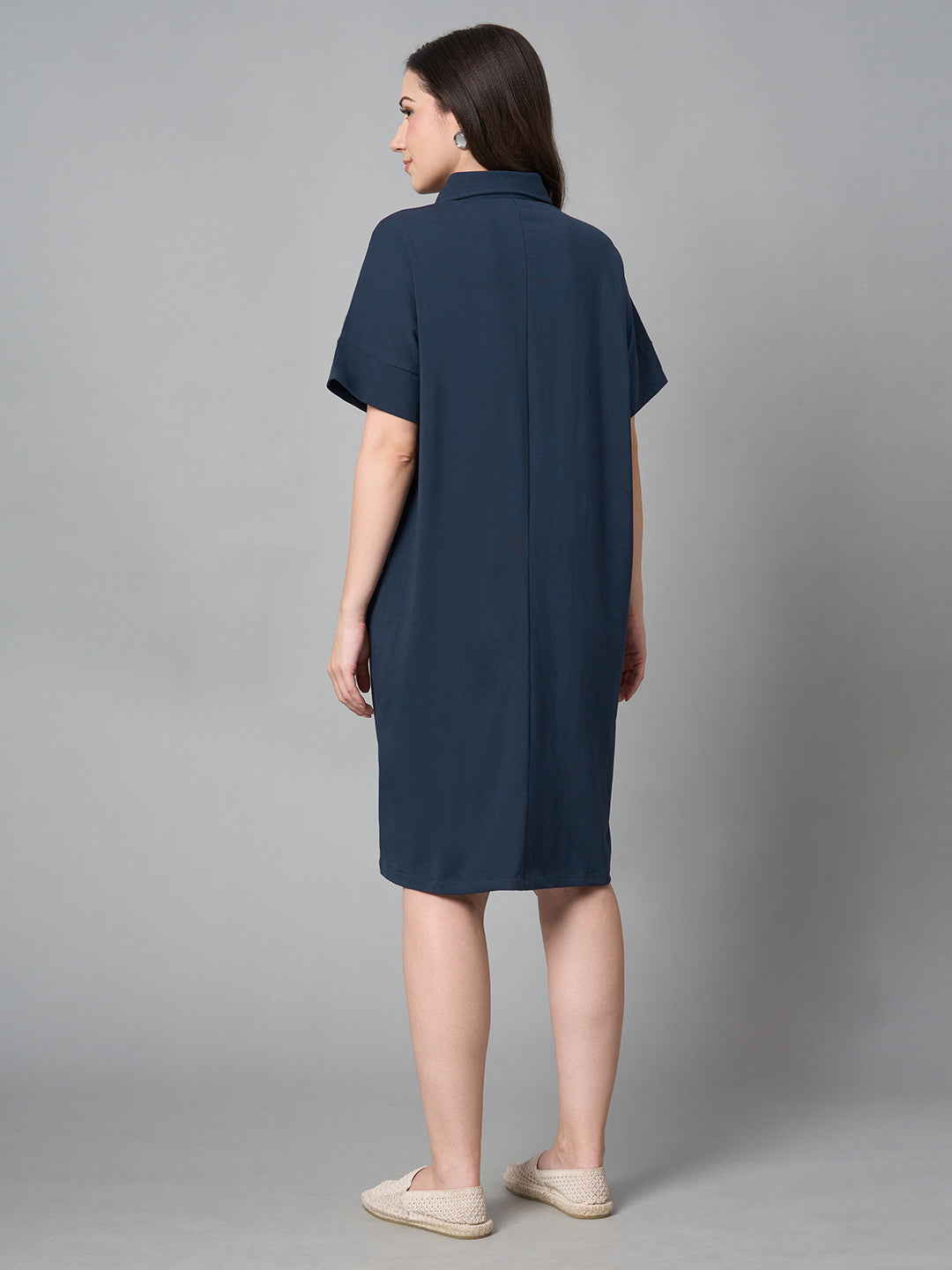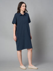 Women's Blue Cotton Elastane Regular Fit Kdress
