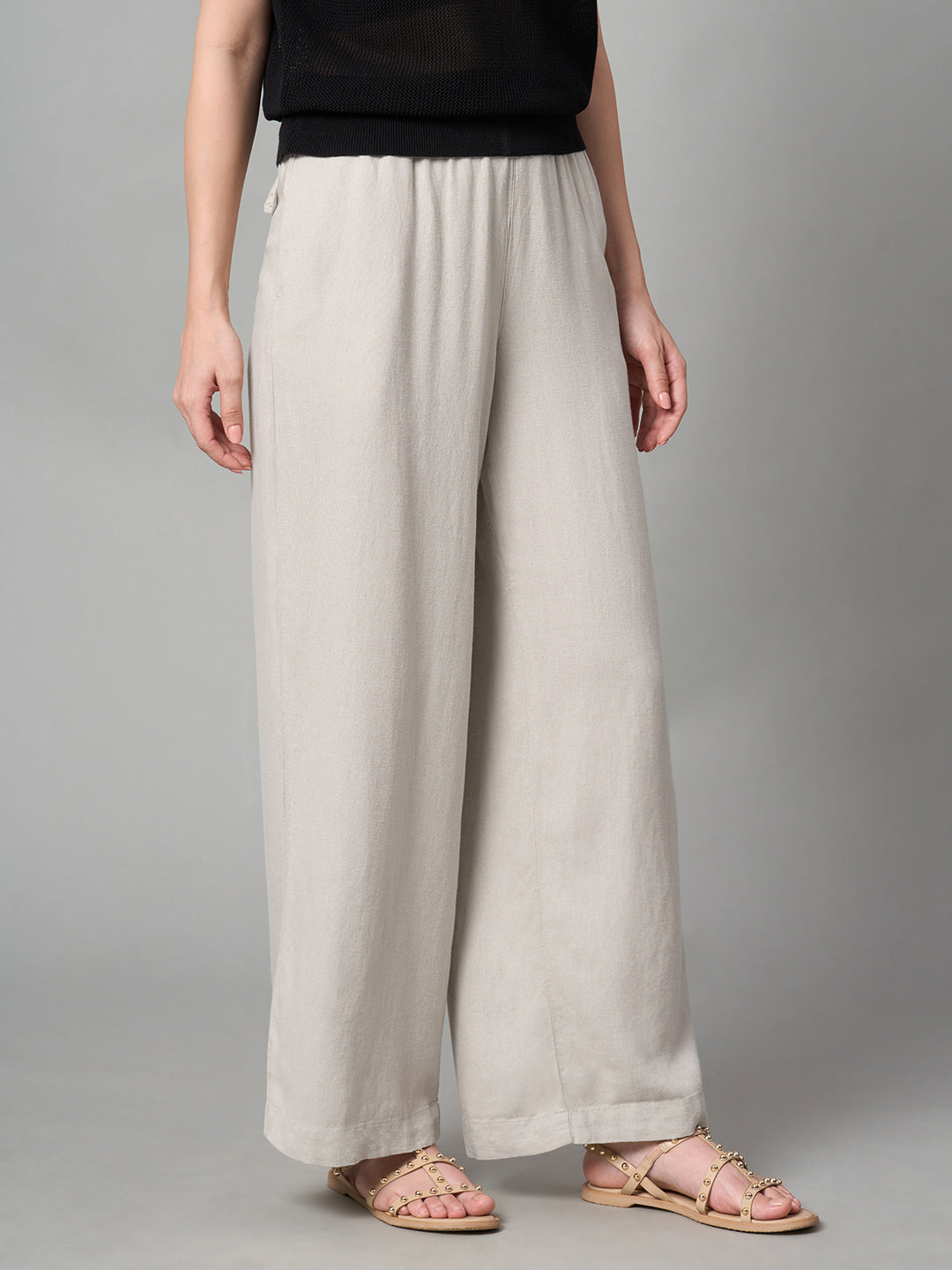Women's Sand Linen Viscose Regular Fit Pant
