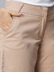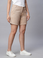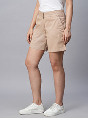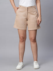 Women's Beige Cotton Lycra Regular Fit Shorts