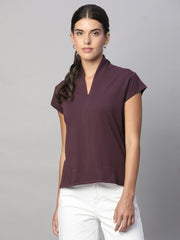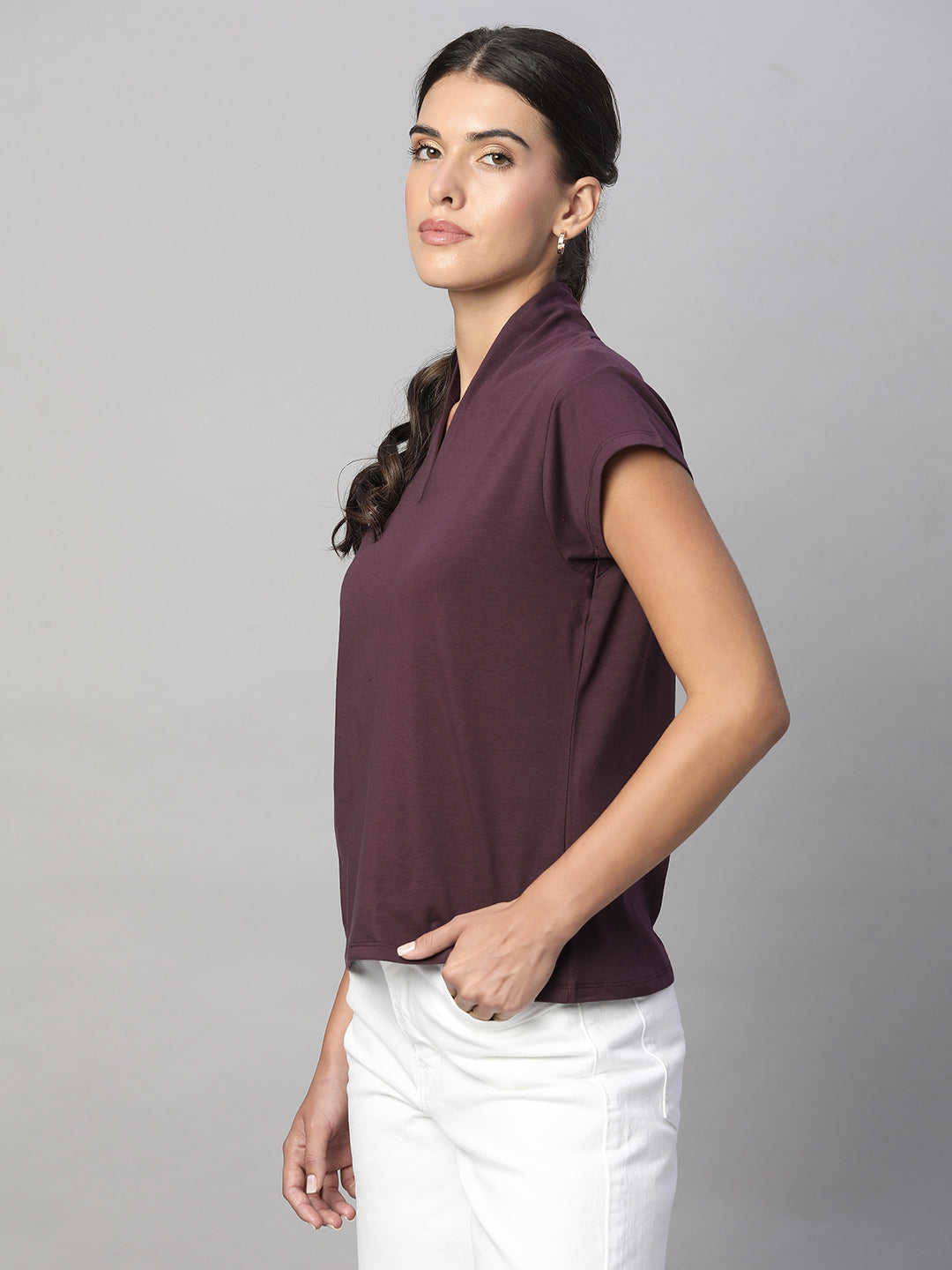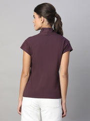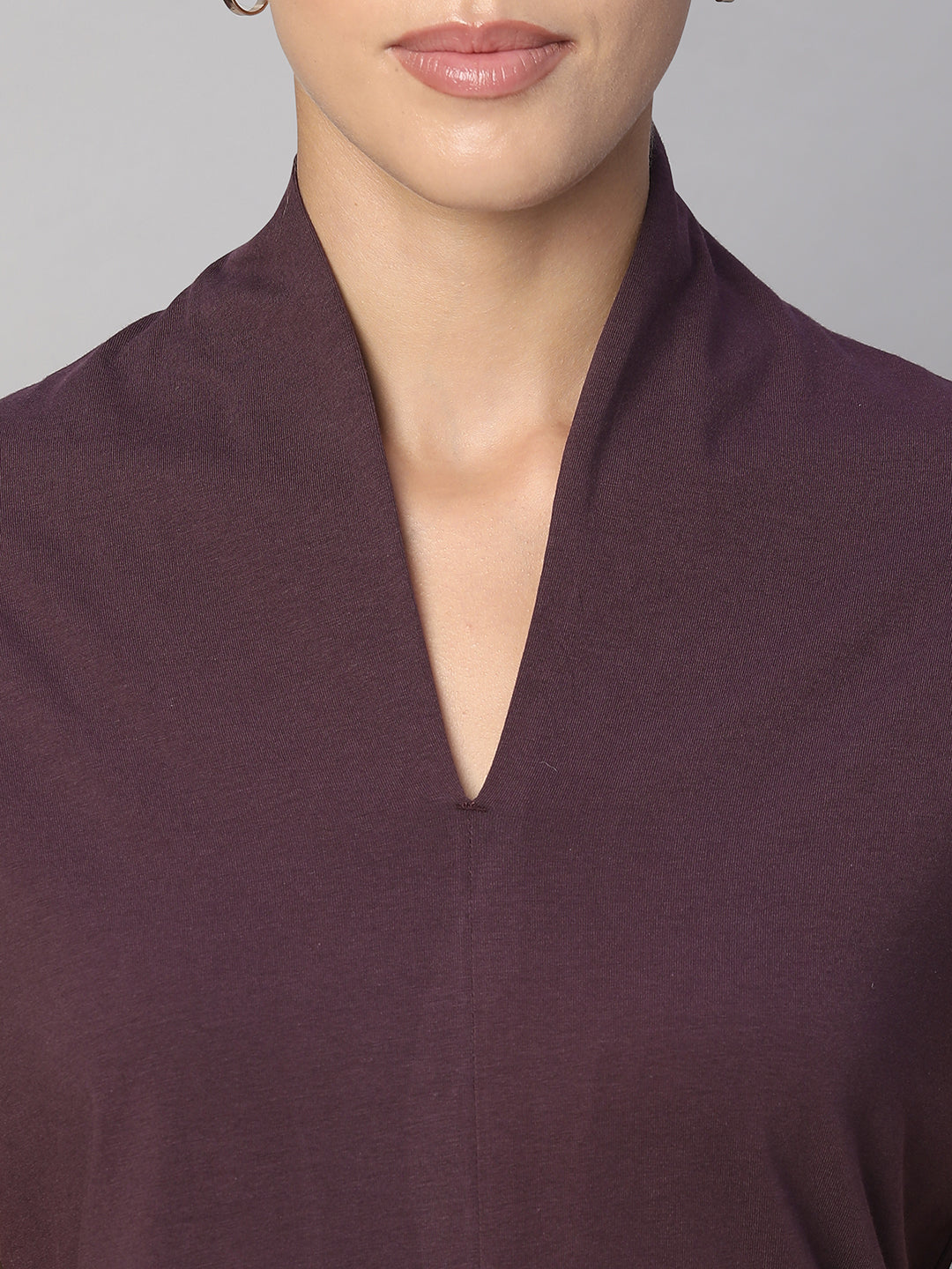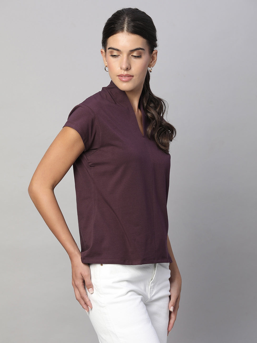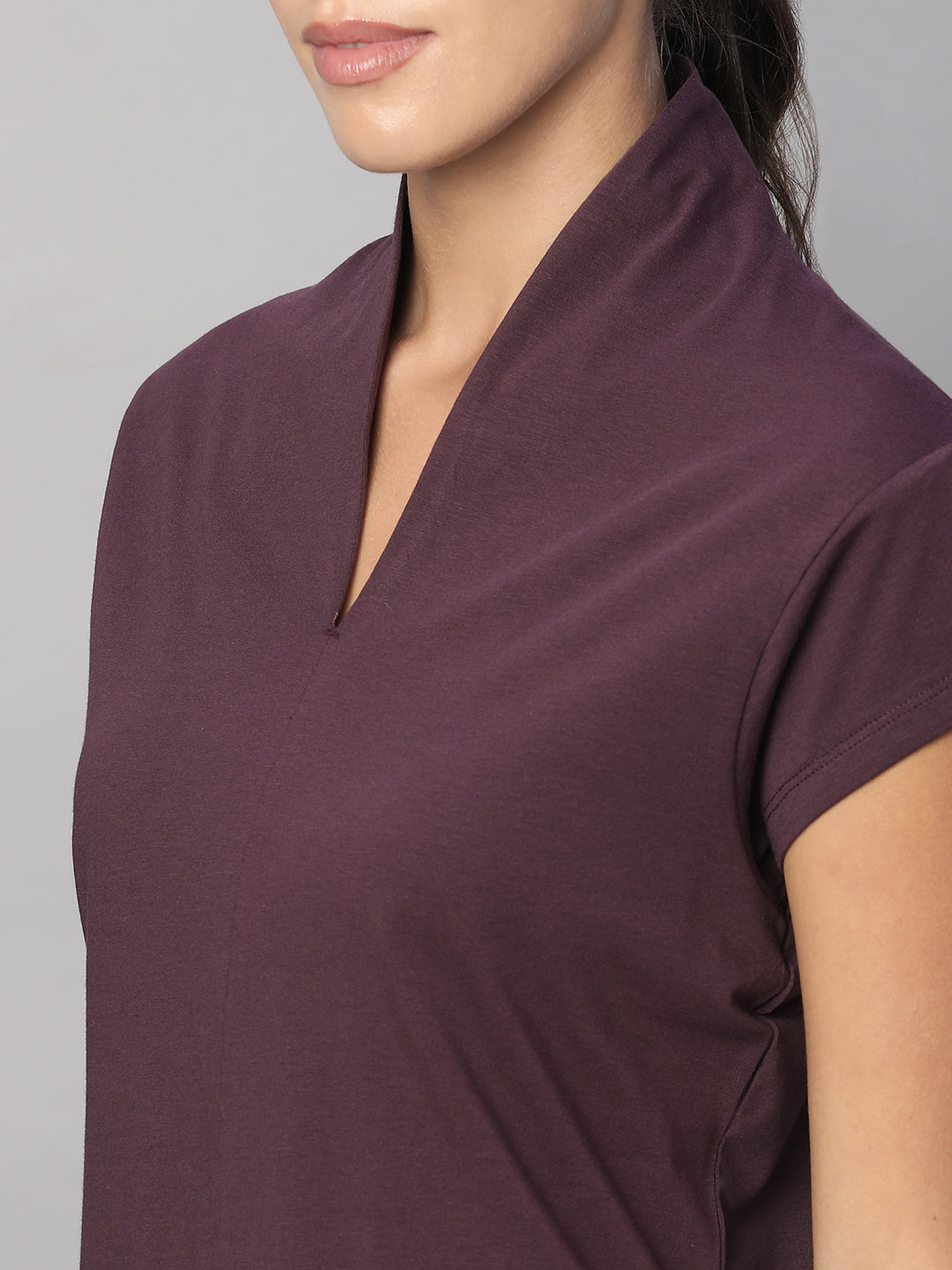 Women's Purple Cotton Elastane Slim Fit Tshirt