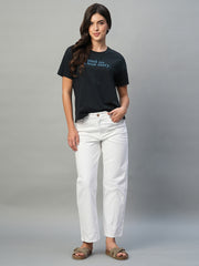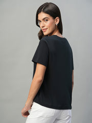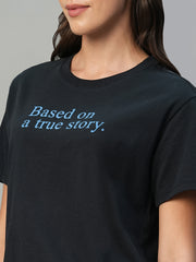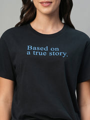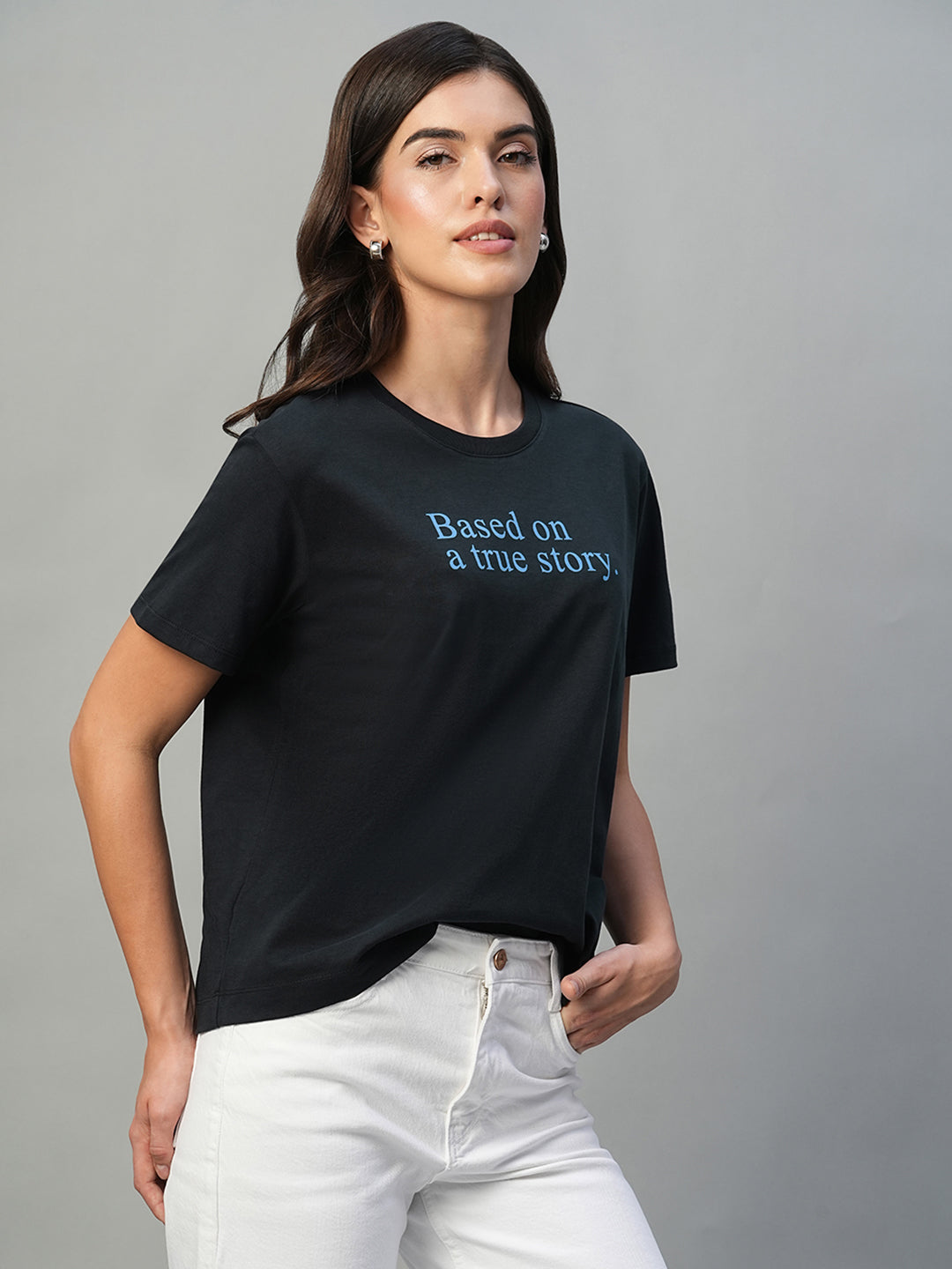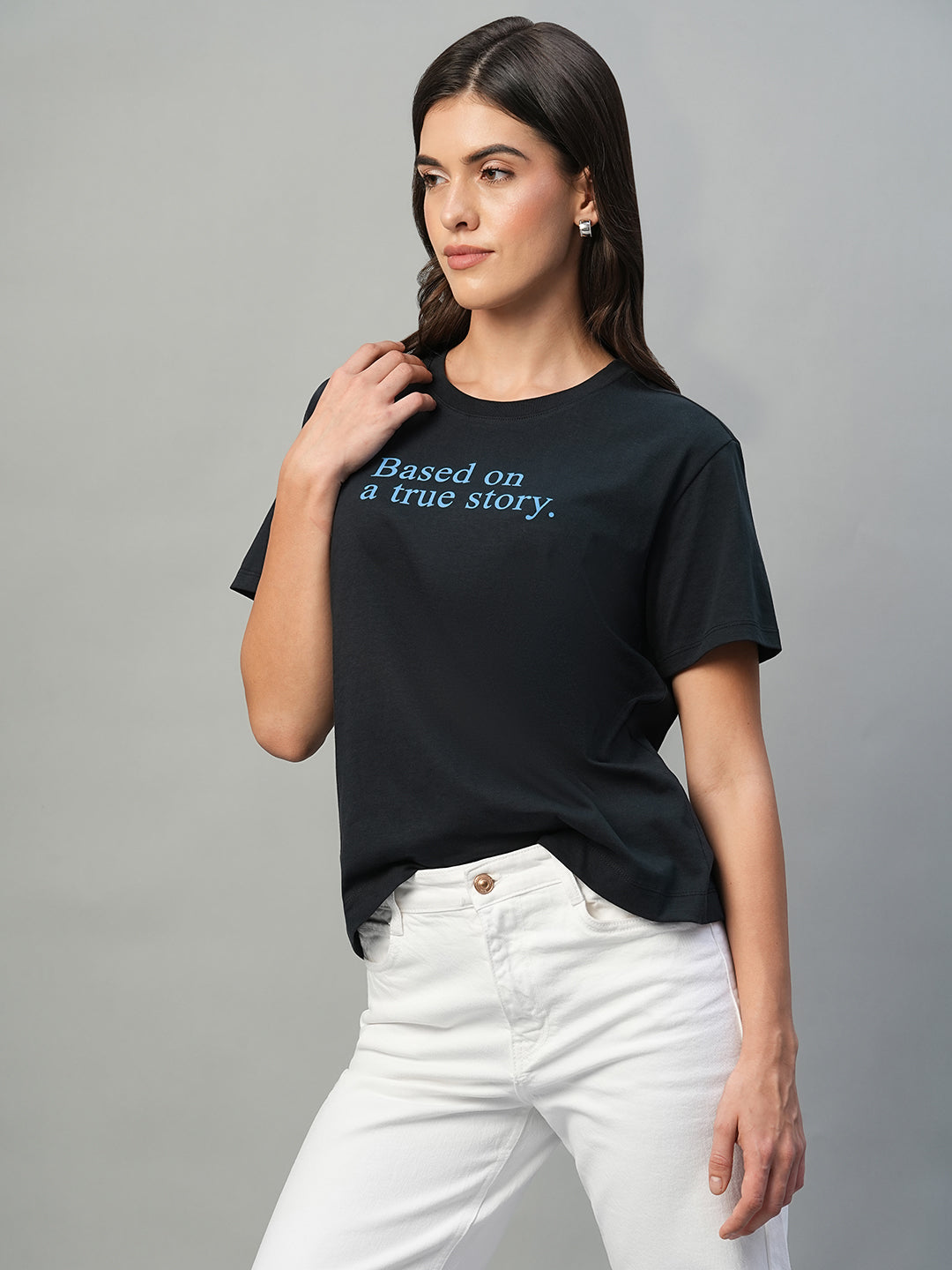 Women's Navy 100% Cotton Regular Fit Tshirt