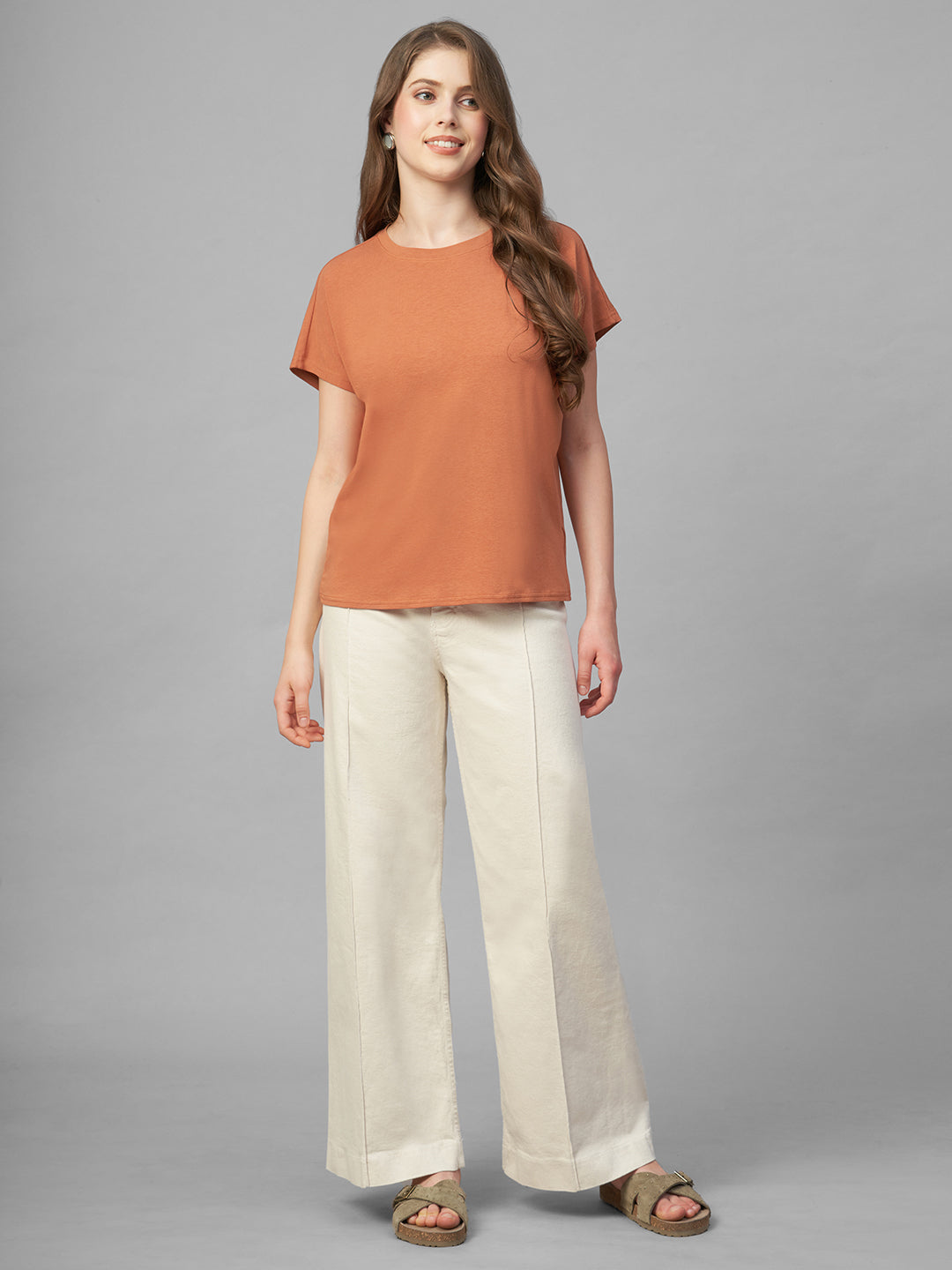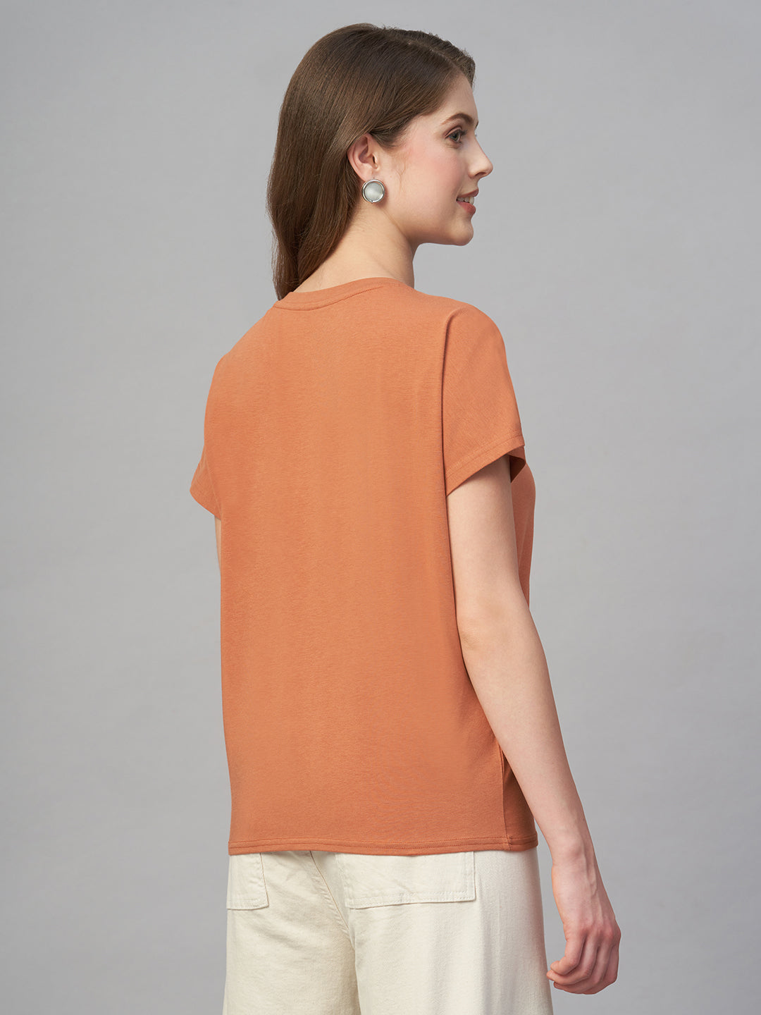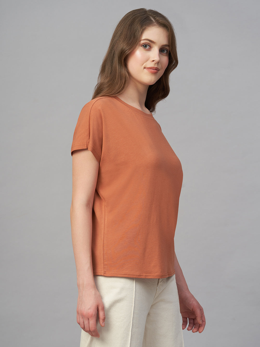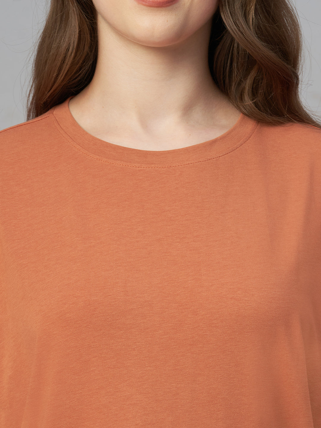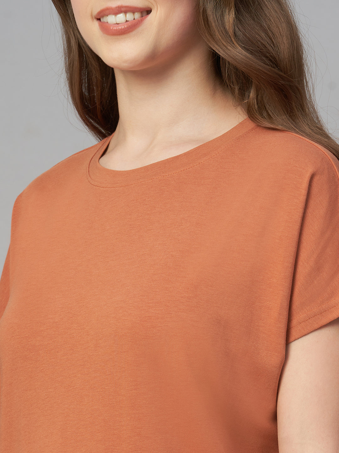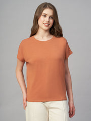 Women's Rust Cotton Bamboo Elastane Regular Fit Tshirt