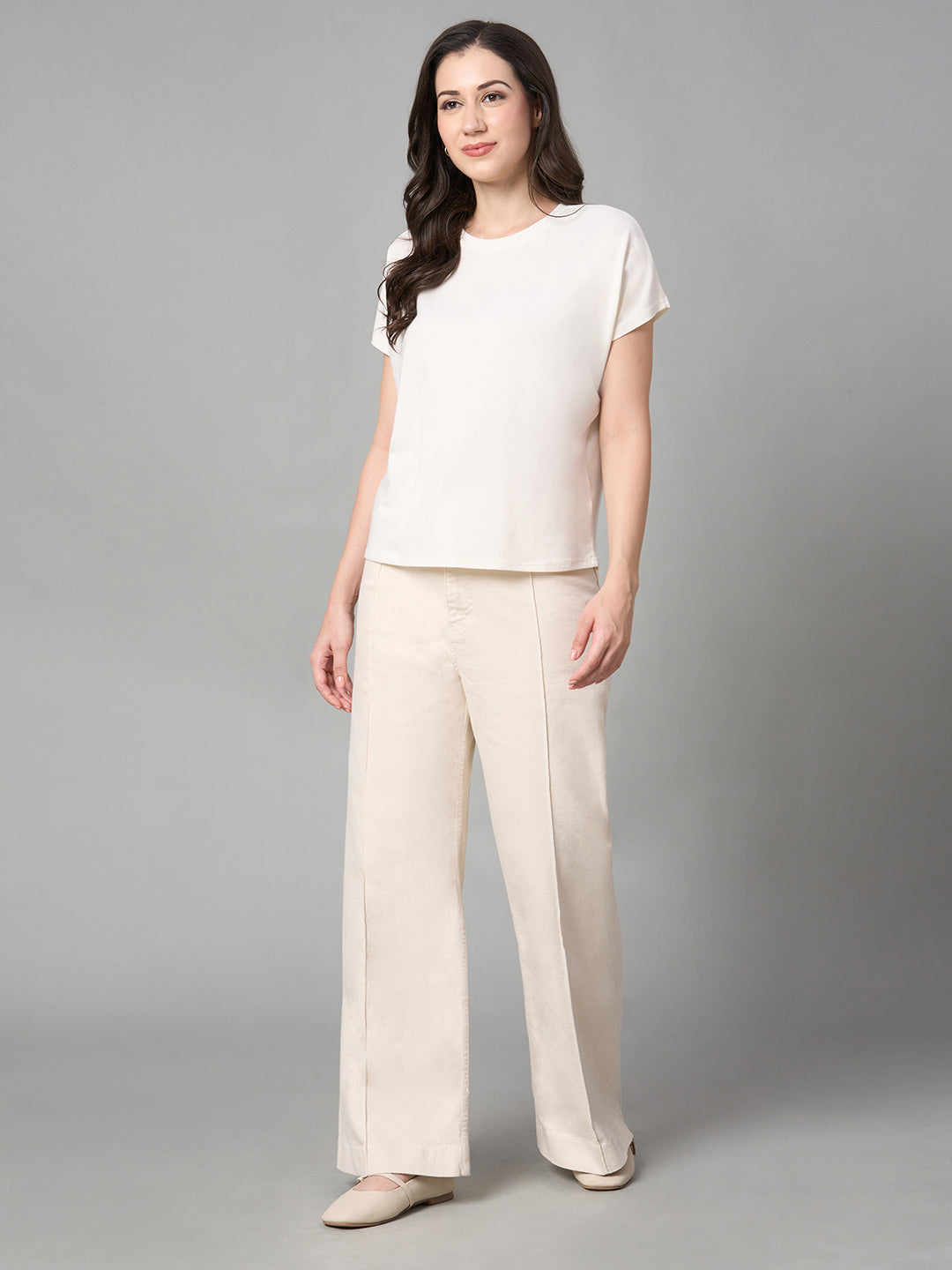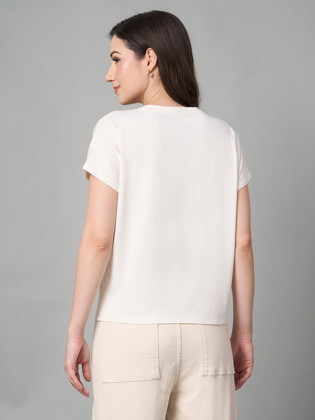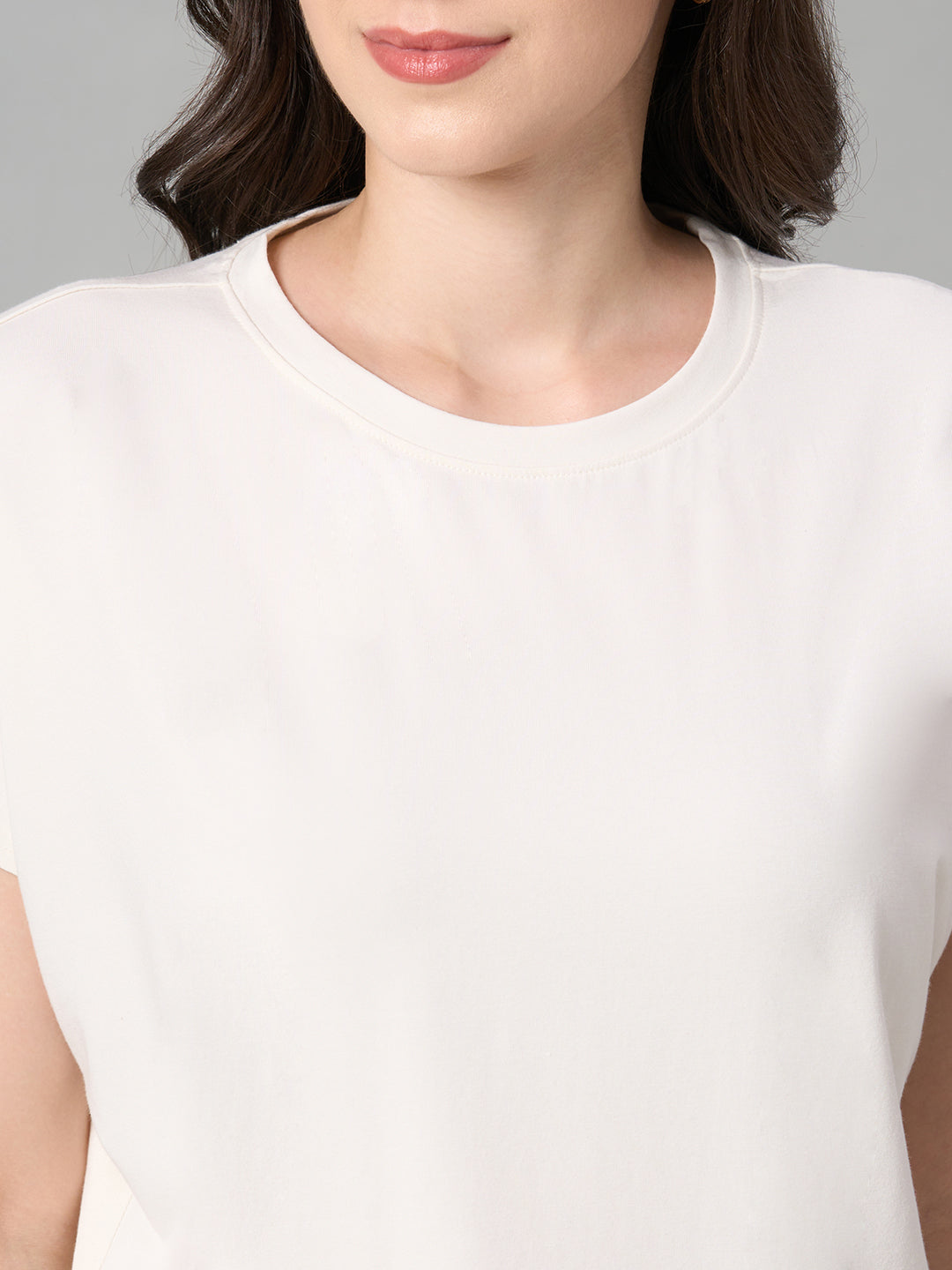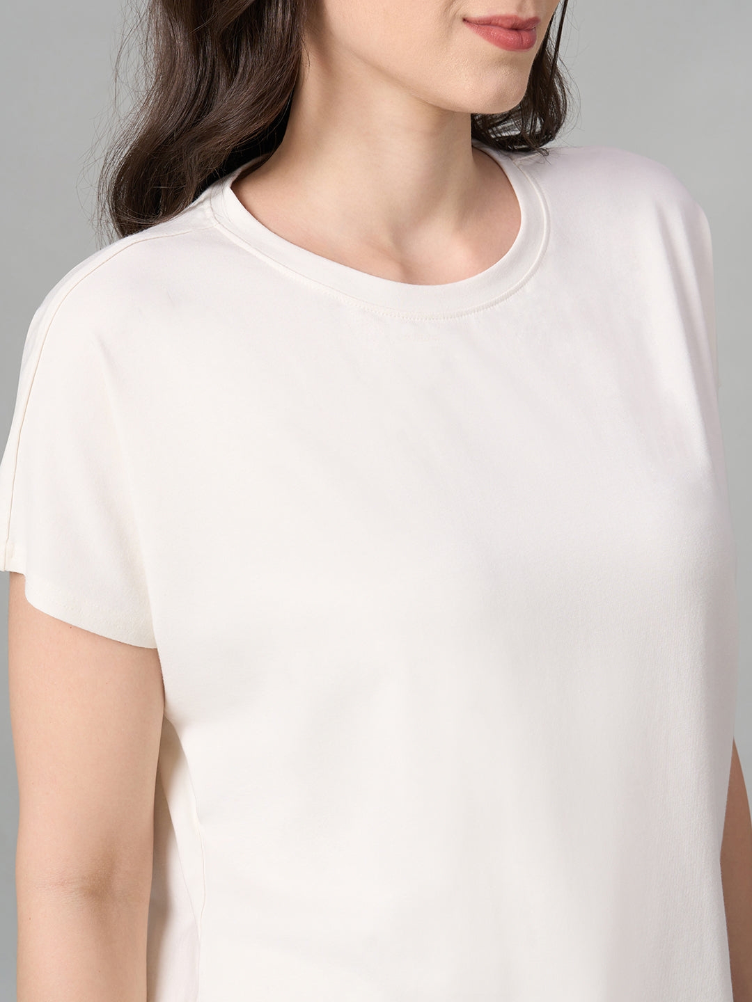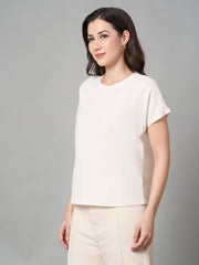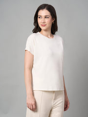 Women's White Cotton Bamboo Elastane Regular Fit Tshirt