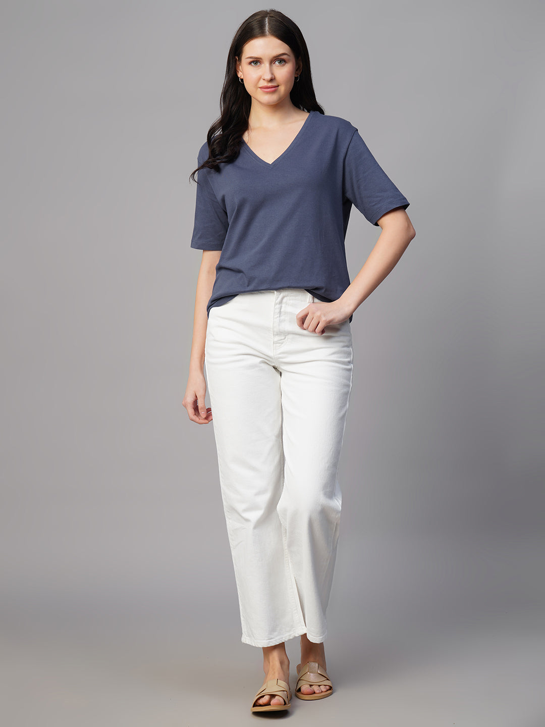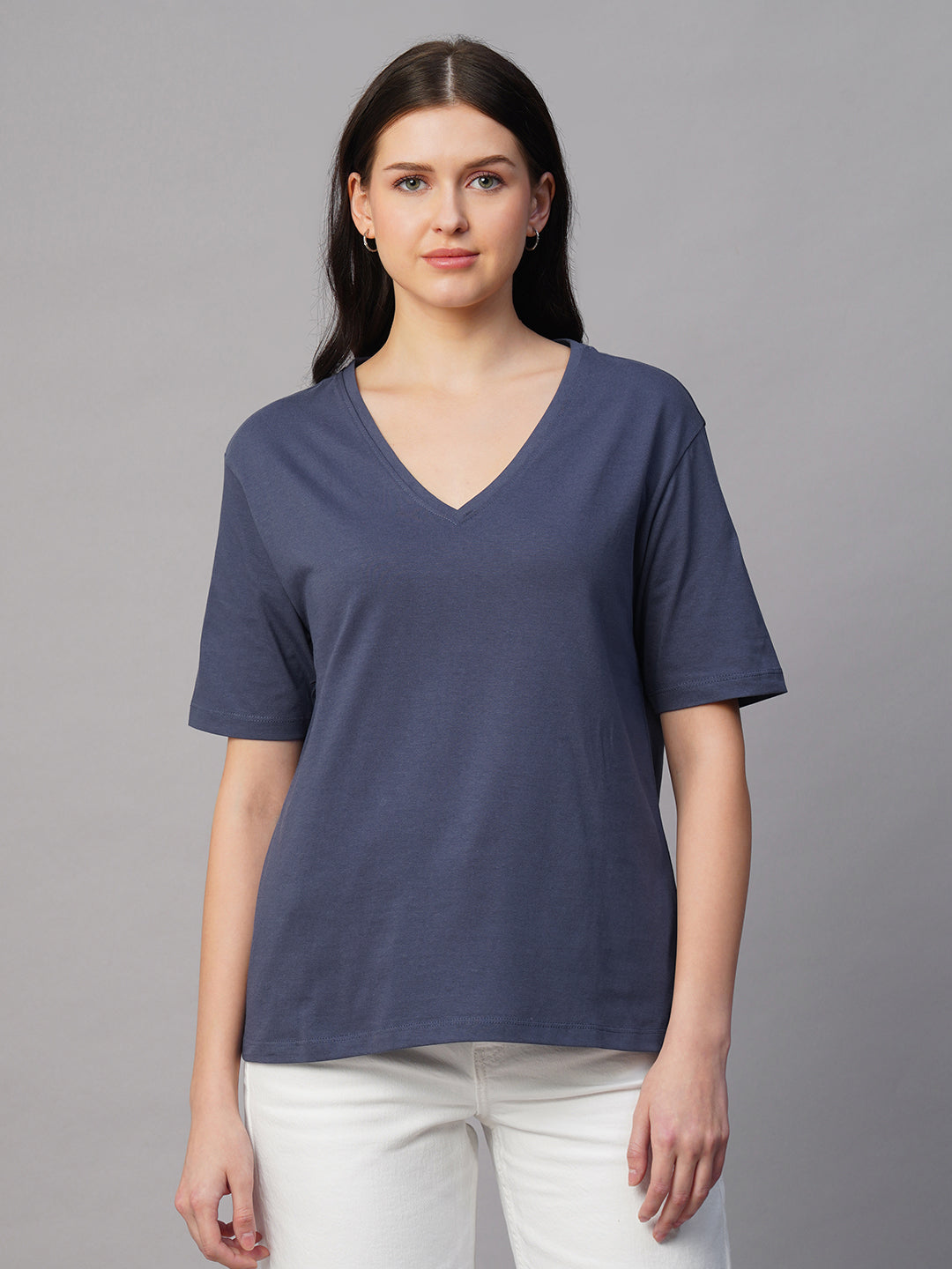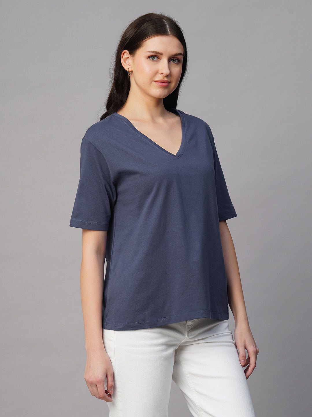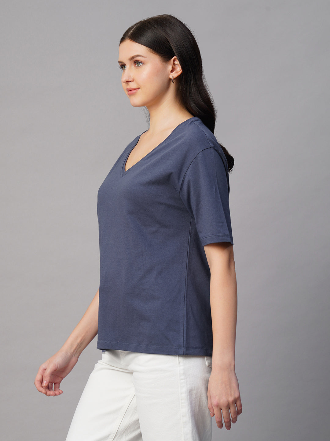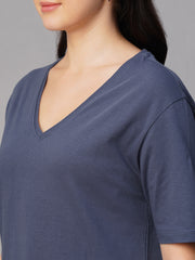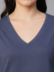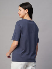 Women's Blue 100% Cotton Regular Fit Tshirt