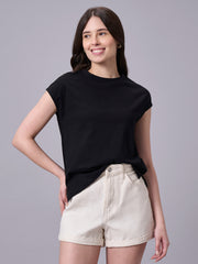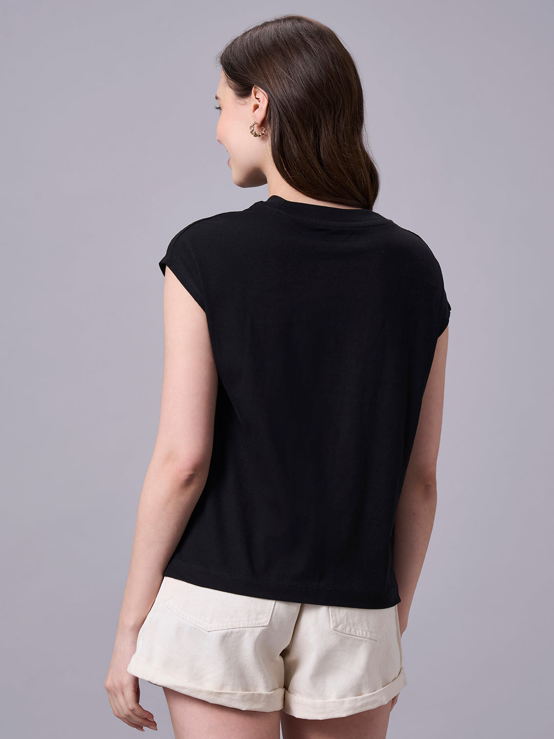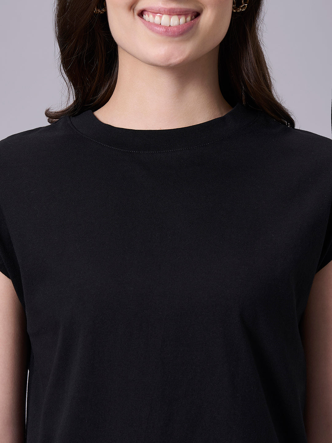 Women's Black 100% Organic Cotton Regular Fit Tshirt