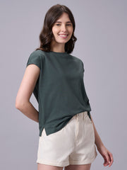 Women's Olive 100% Organic Cotton Regular Fit Tshirt
