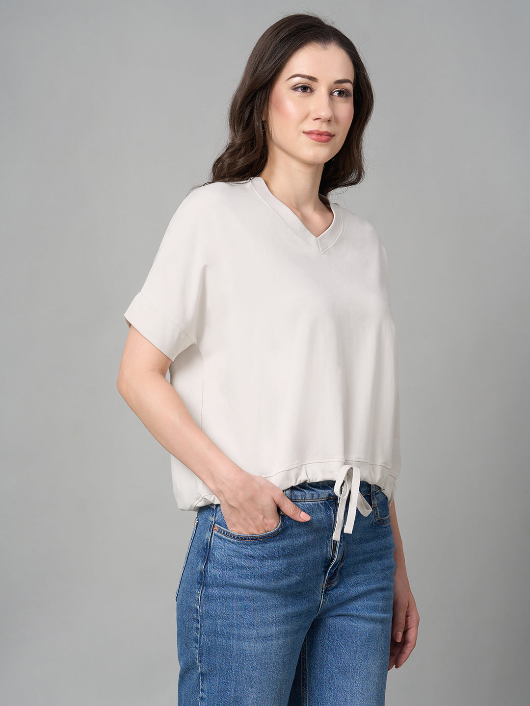 Women's Natural Cotton Elastane Loose Fit Tshirt