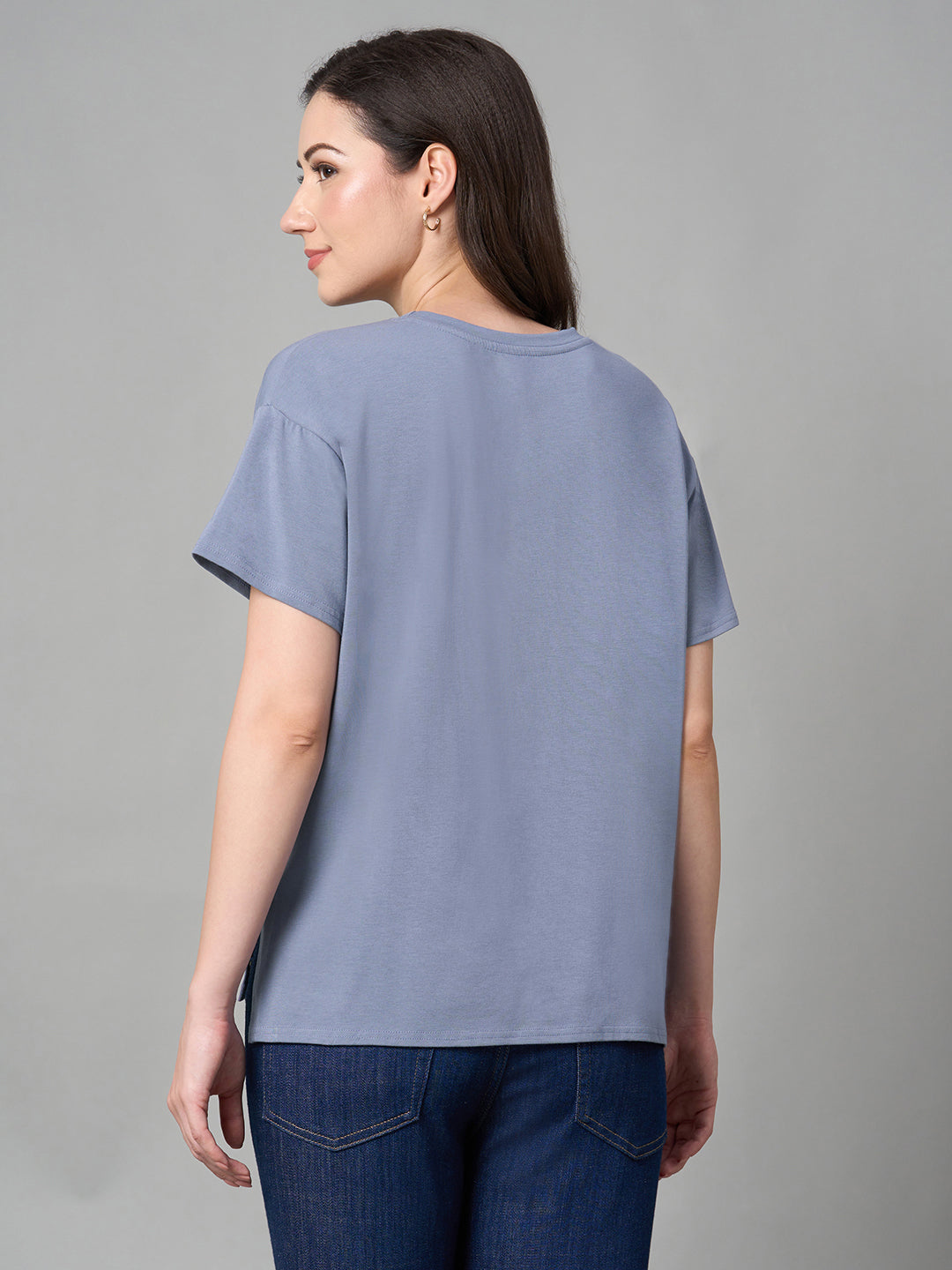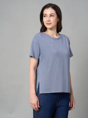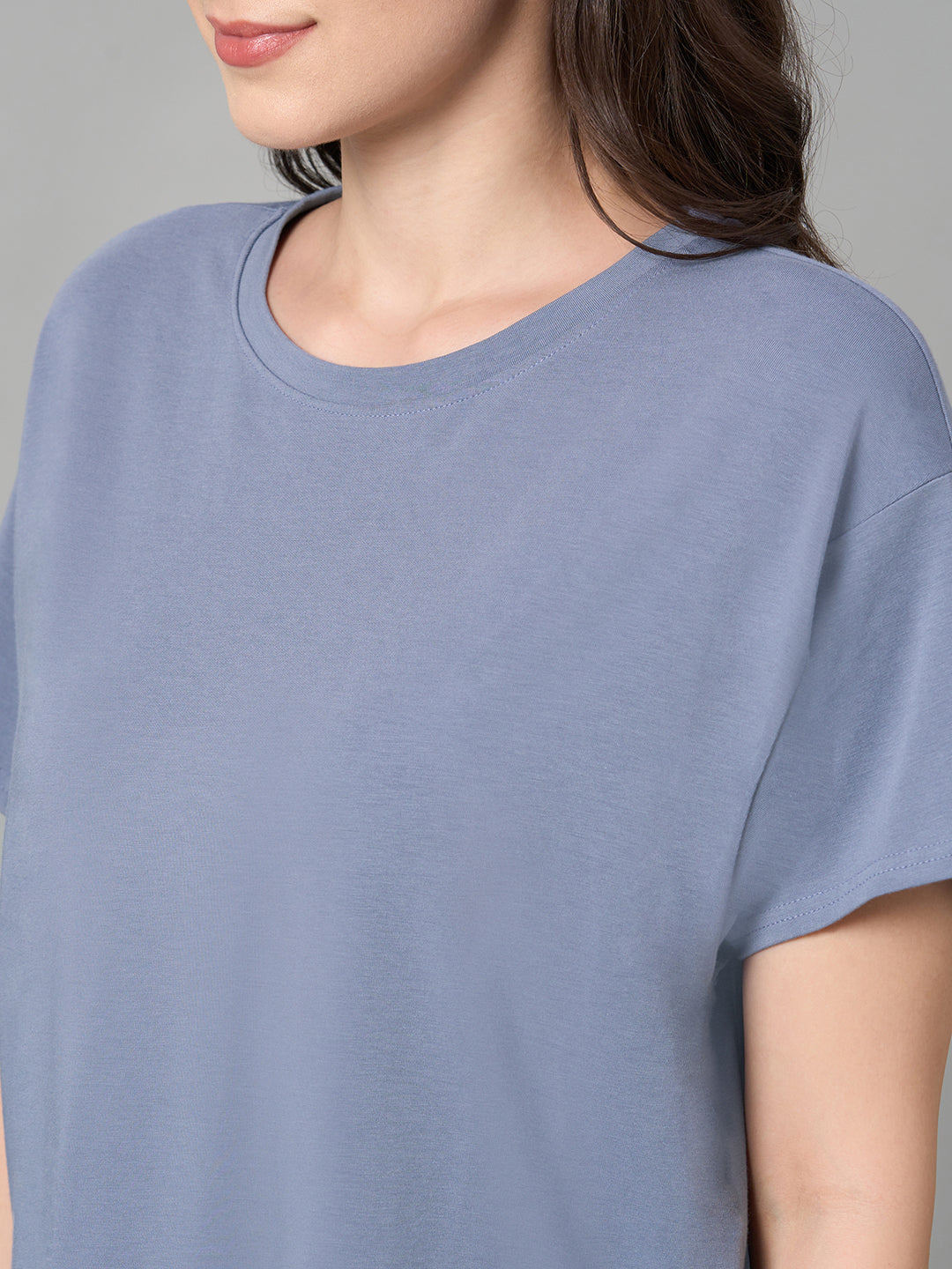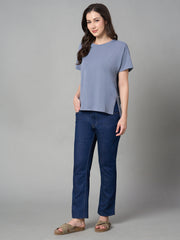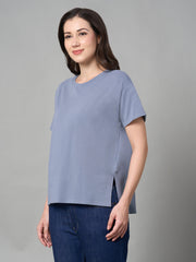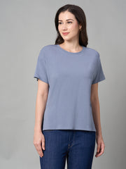 Women's Lavender Cotton Bamboo Elastane Loose Fit Tshirt