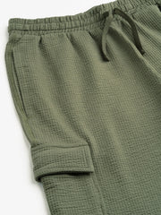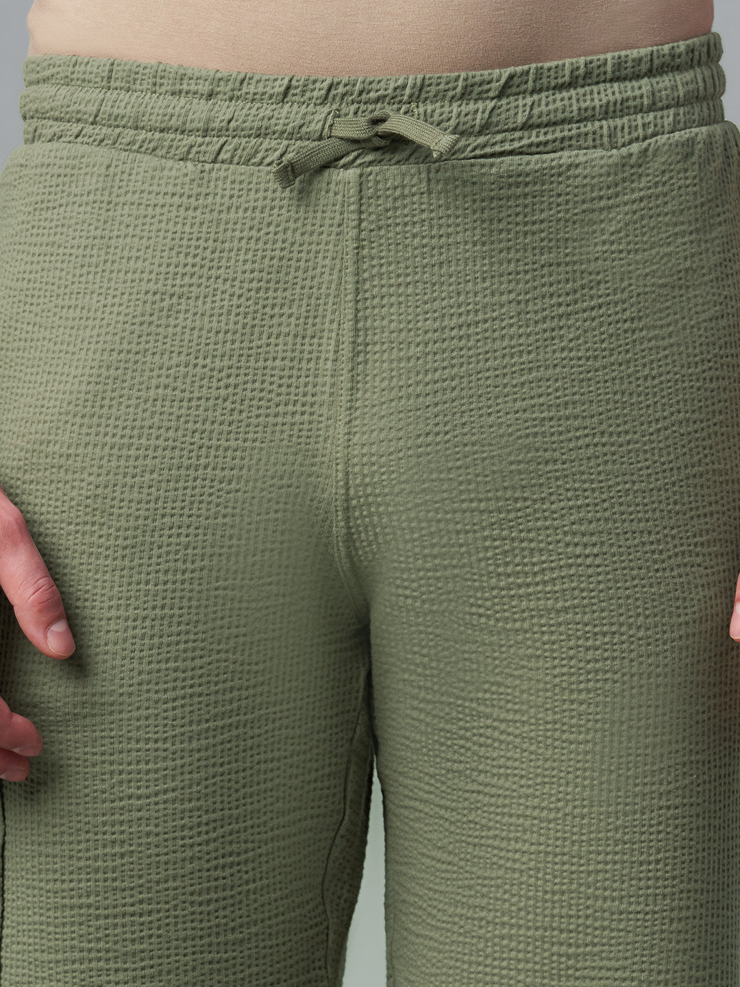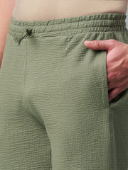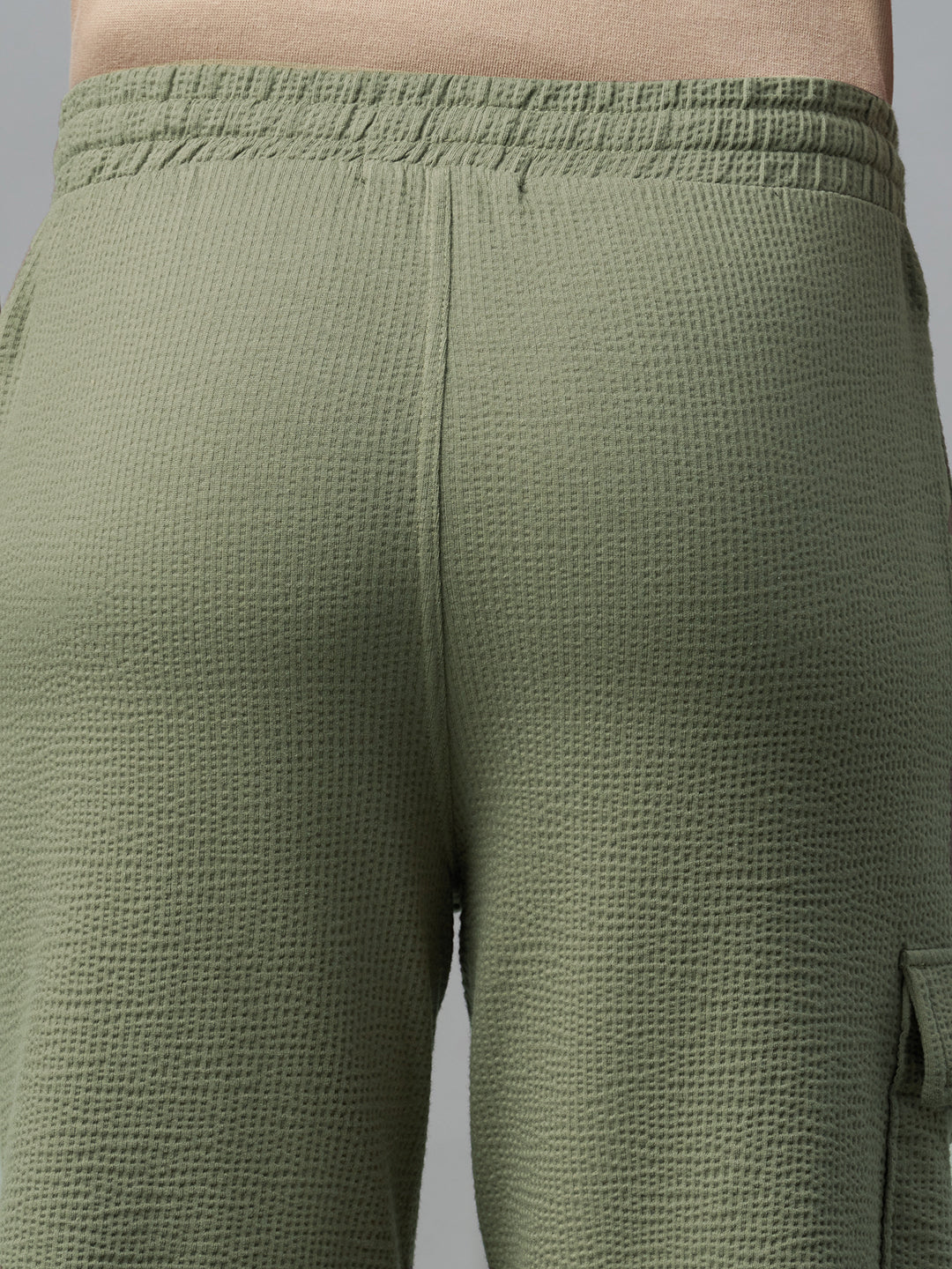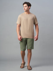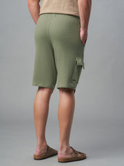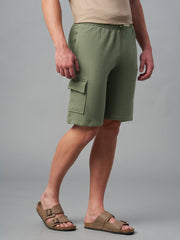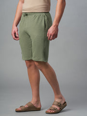 Men's Olive Cotton Elastane Regular Fit Knit Shorts