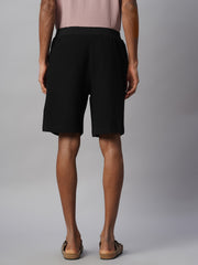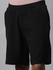 Men's Black 100% Cotton Regular Fit Knit Shorts