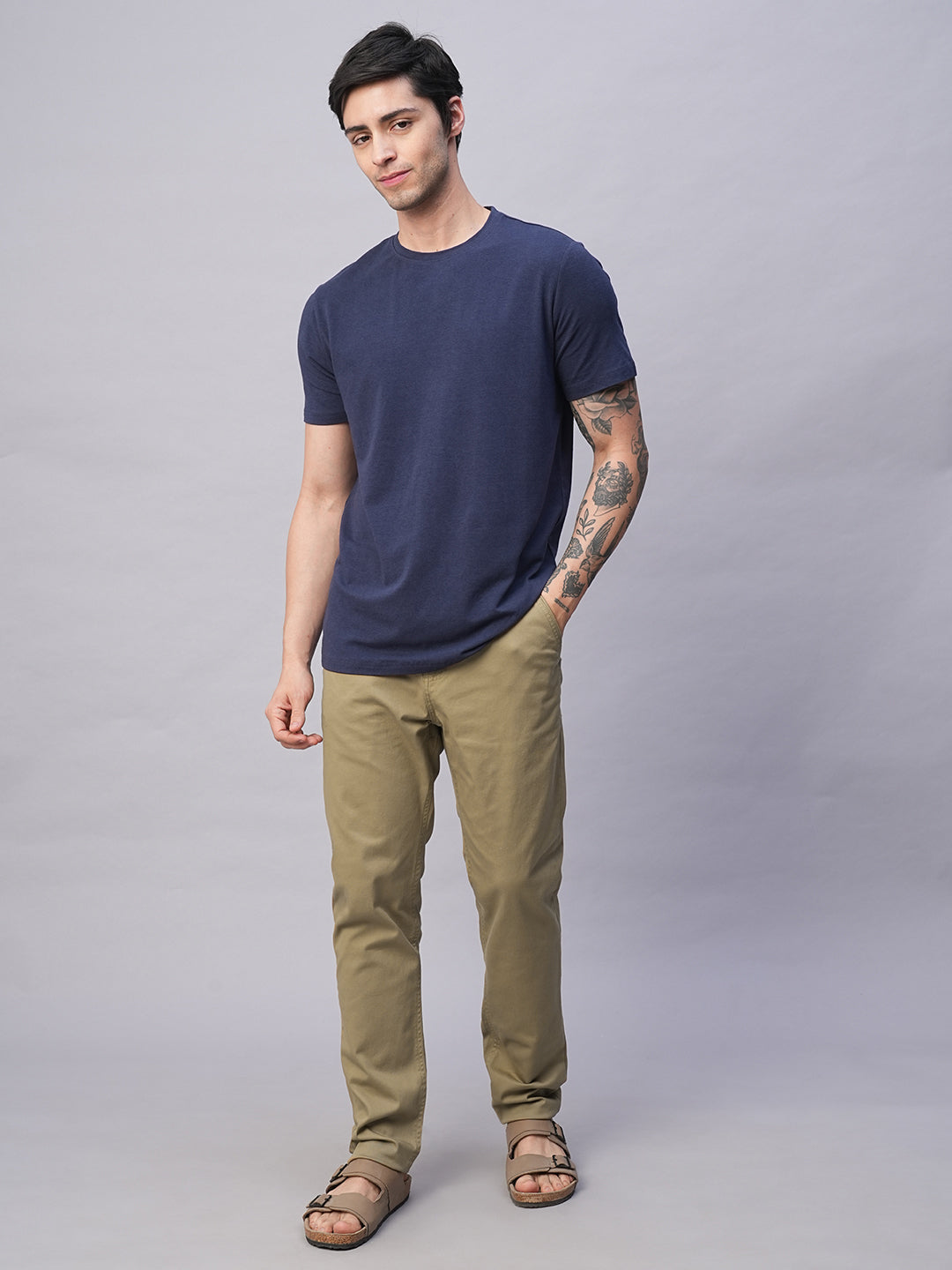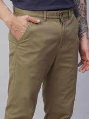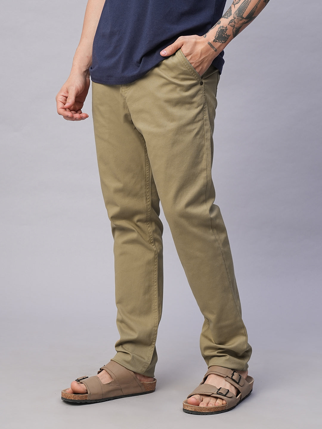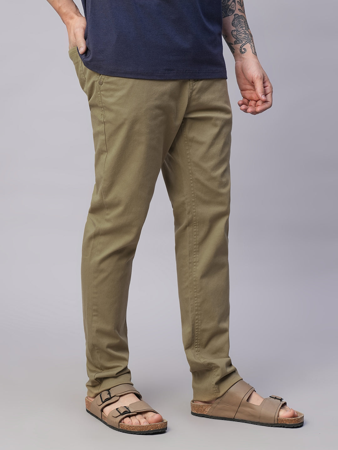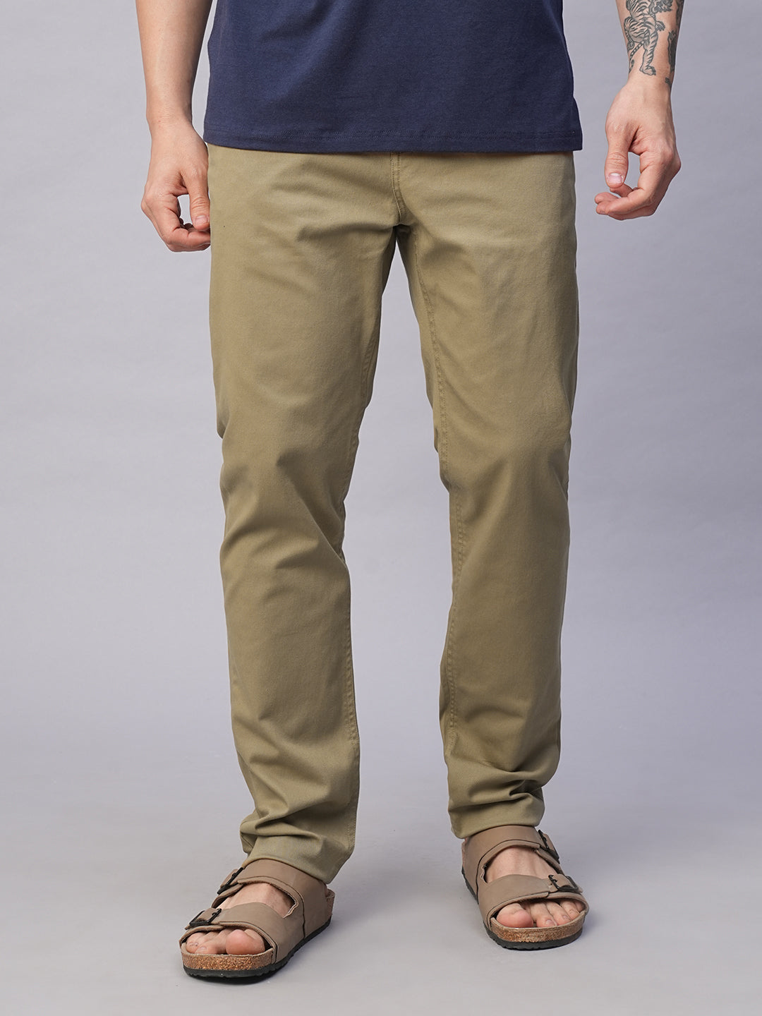 Men's Khaki Cotton Lycra Slim Fit Pant