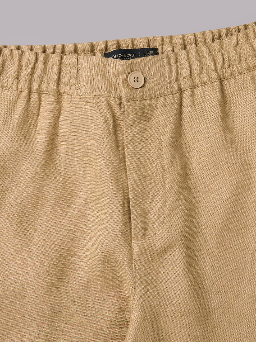 Men's Khaki 100% Linen Regular Fit Pant