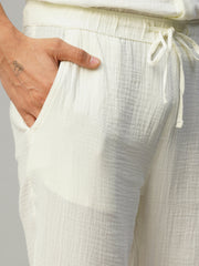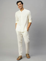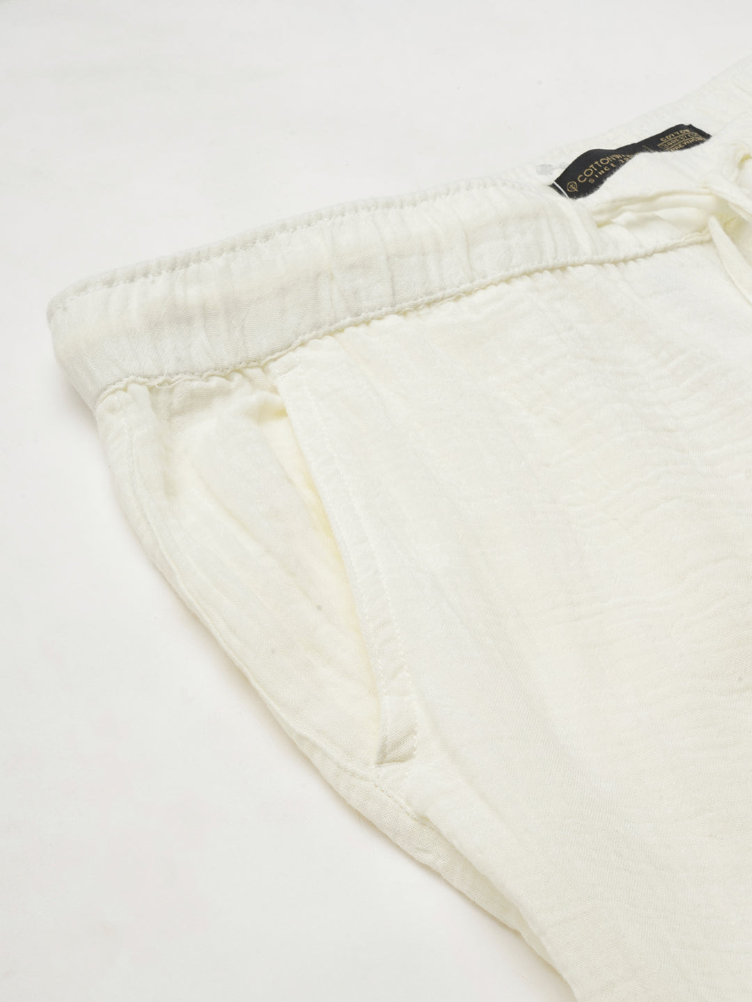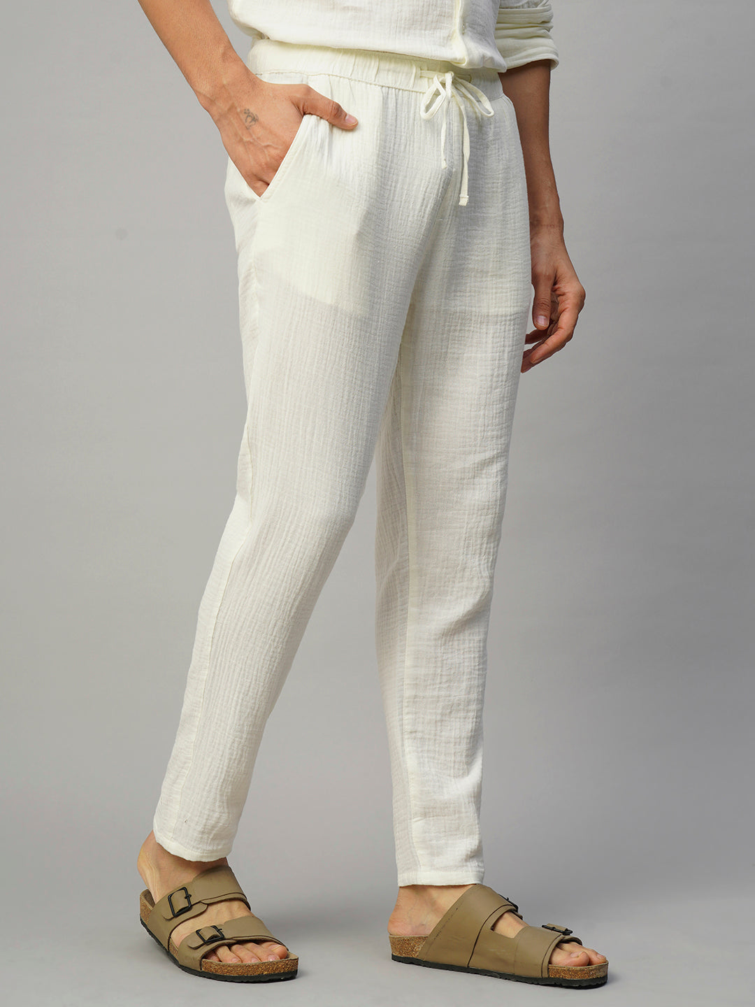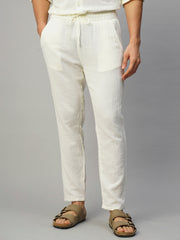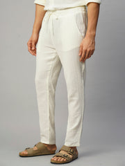 Men's White 100% Cotton Slim Fit Pant