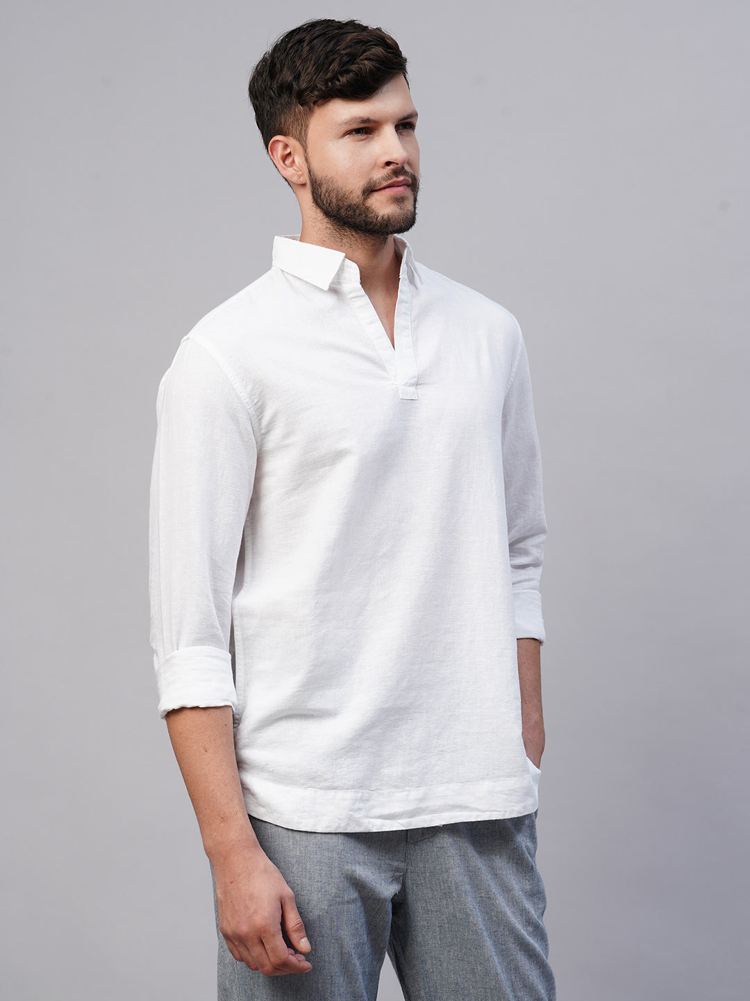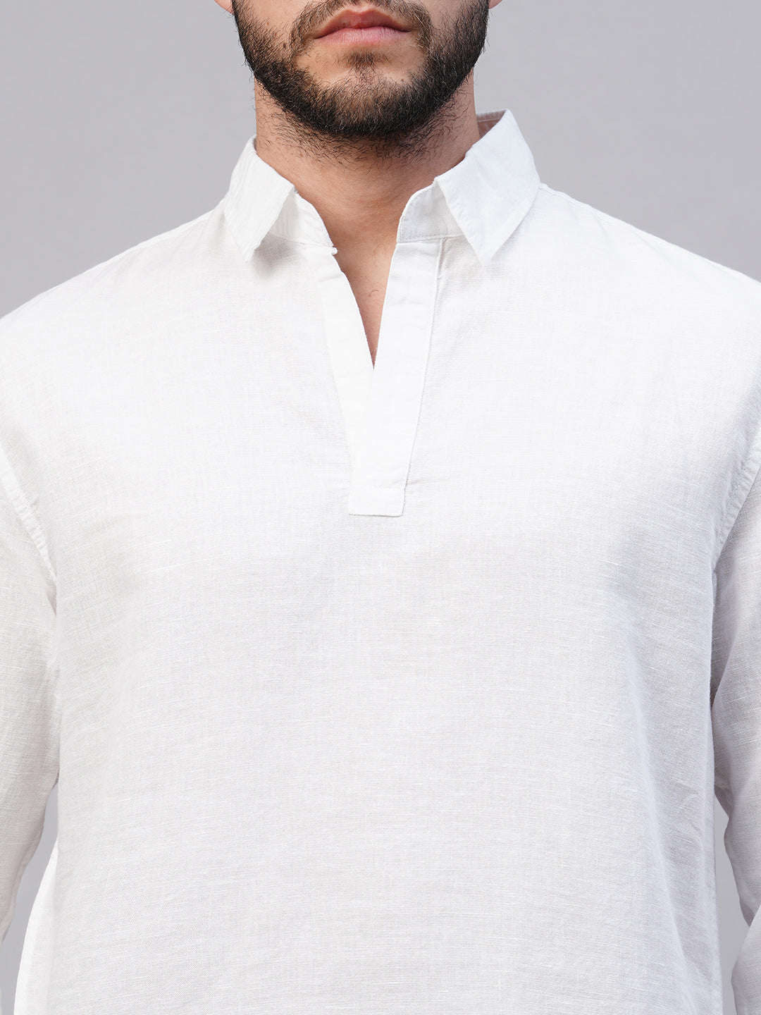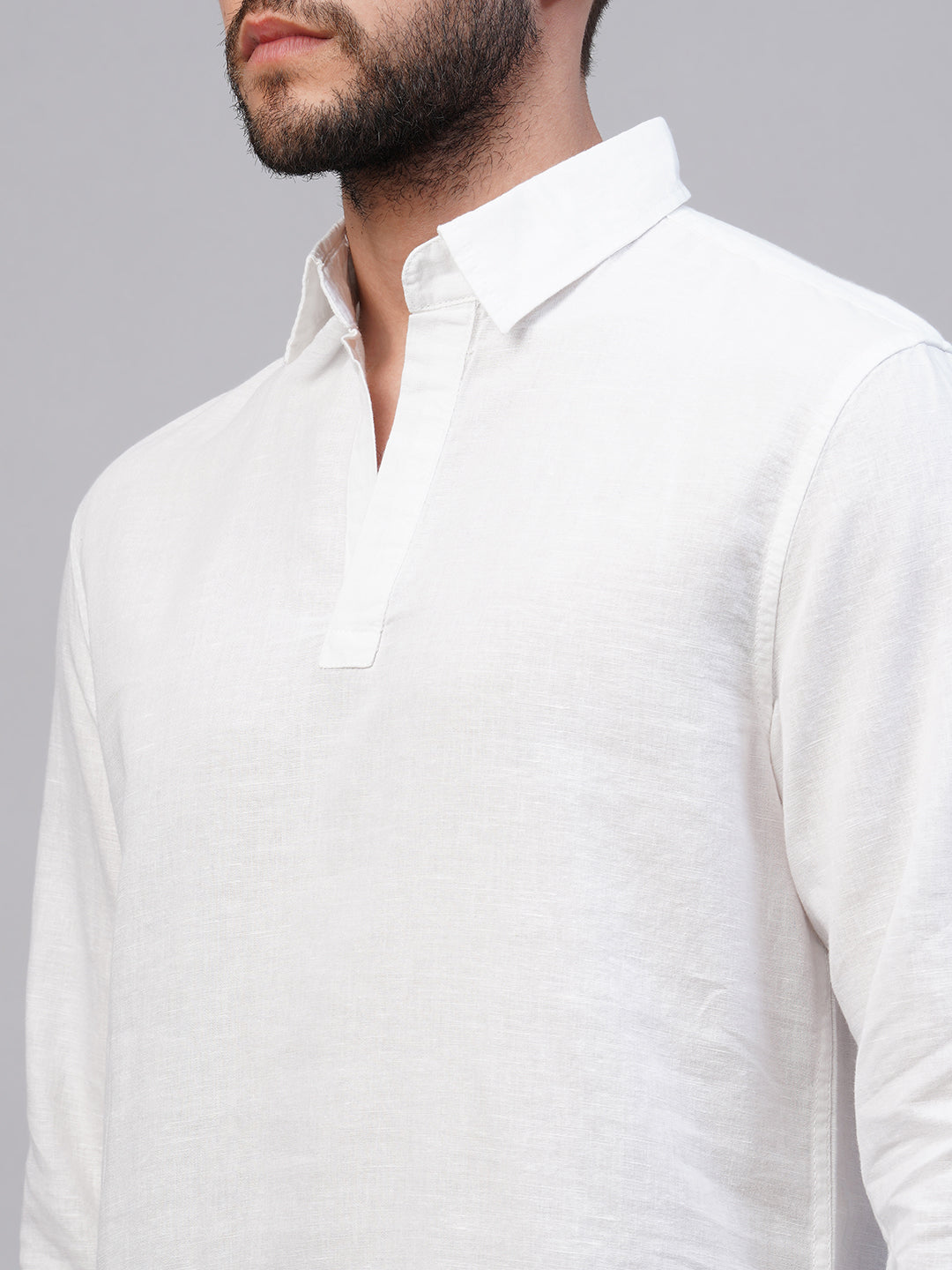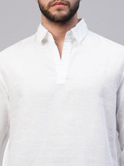 Men's White 100% Linen Regular Fit Kurta Shirt