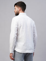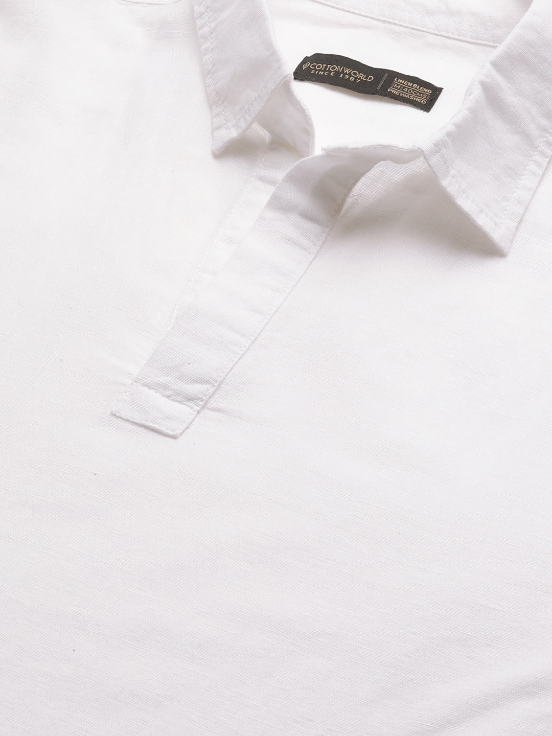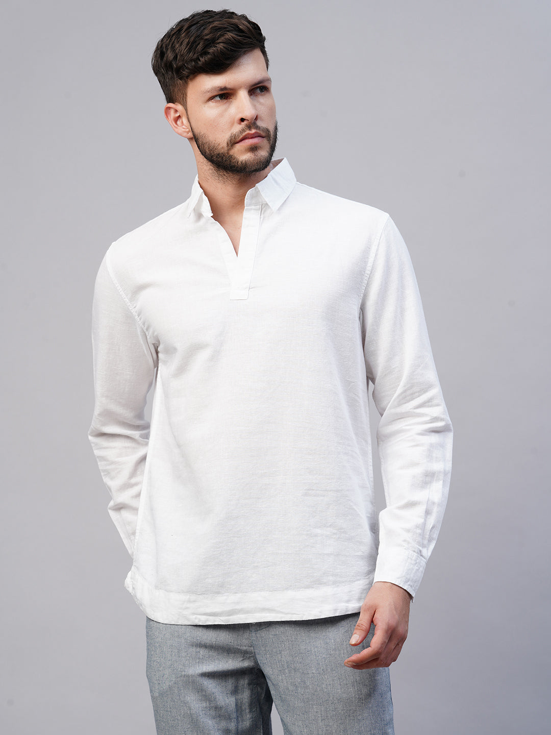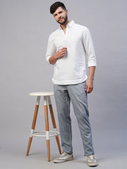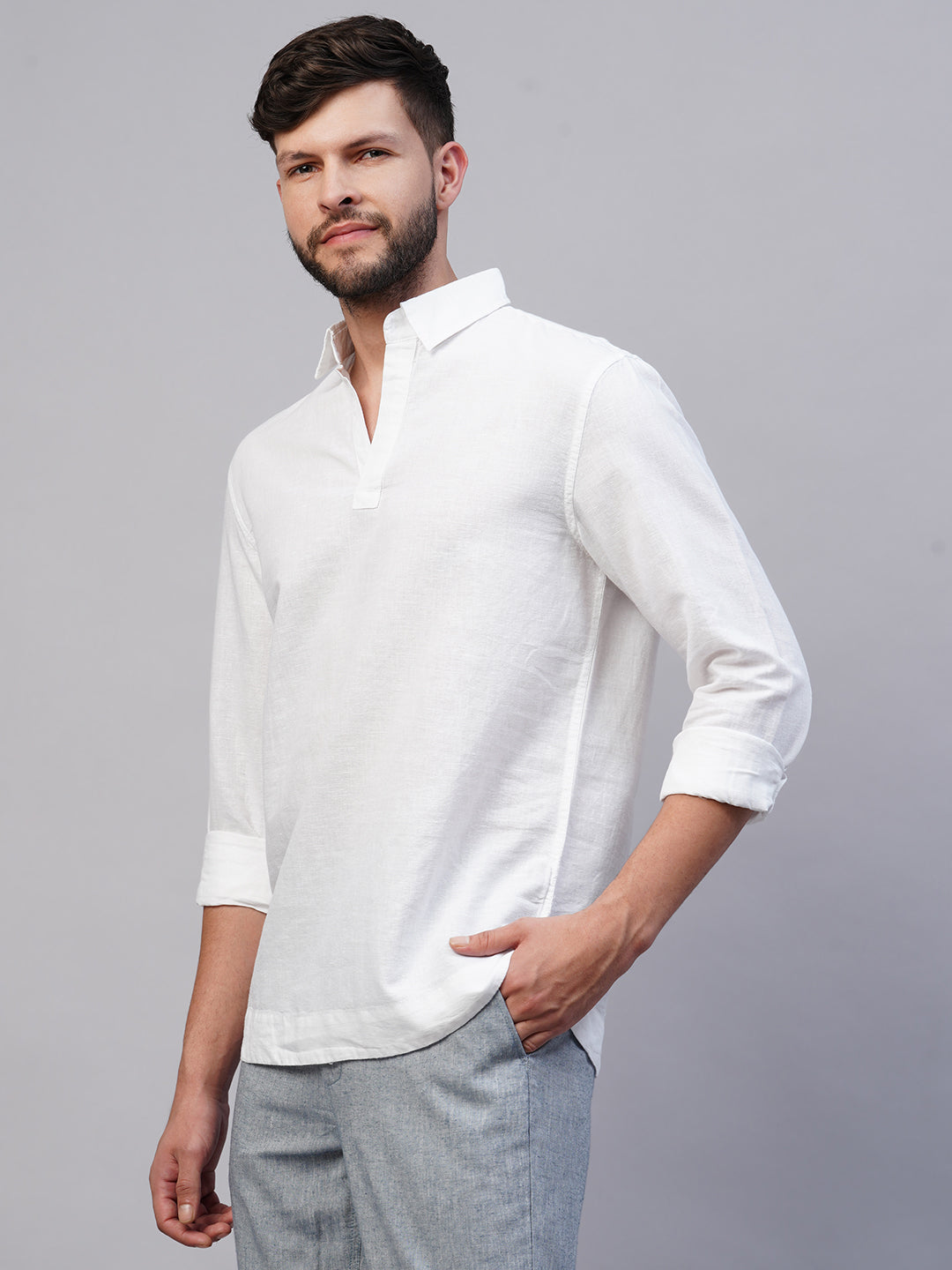 Men's White 100% Linen Regular Fit Kurta Shirt