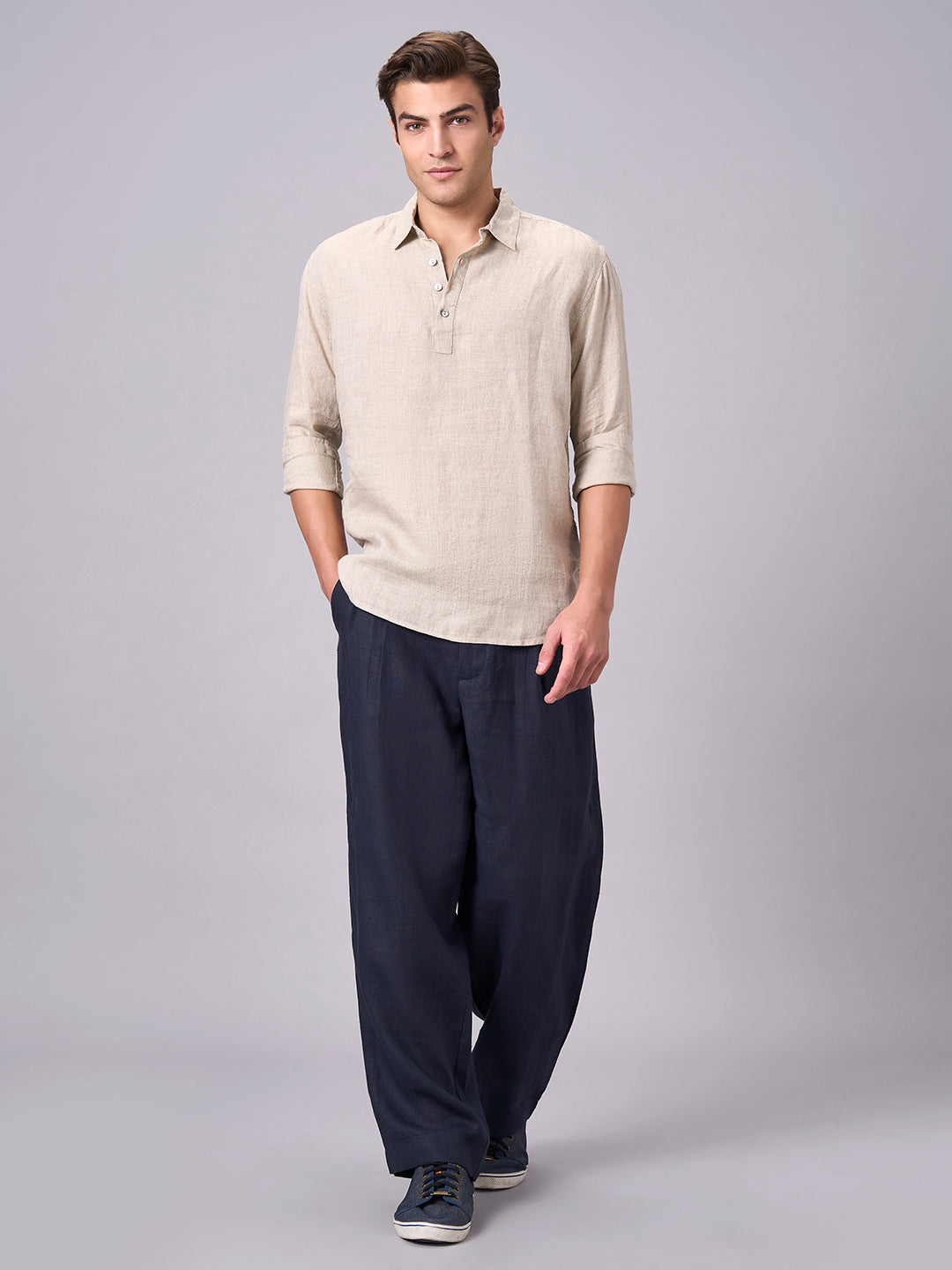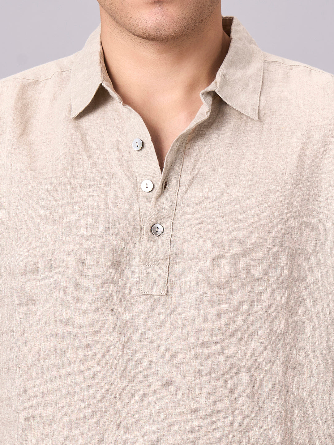 Men's Natural 100% Linen Regular Fit Shirt