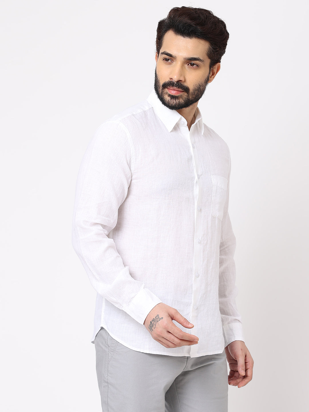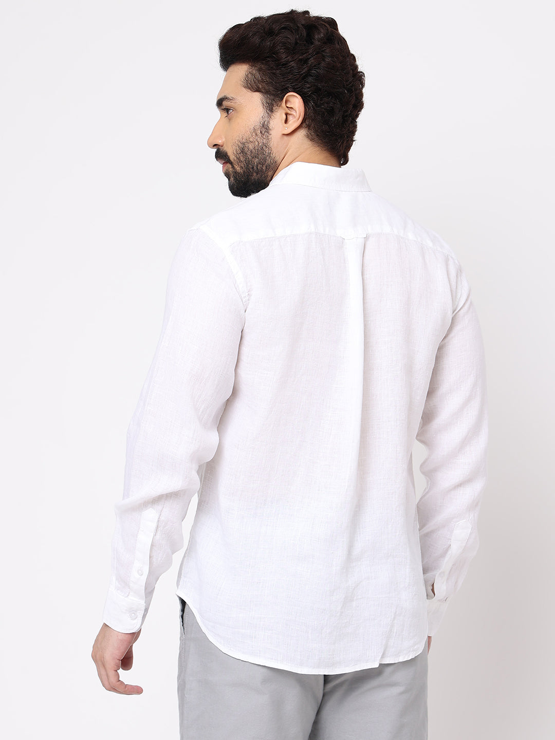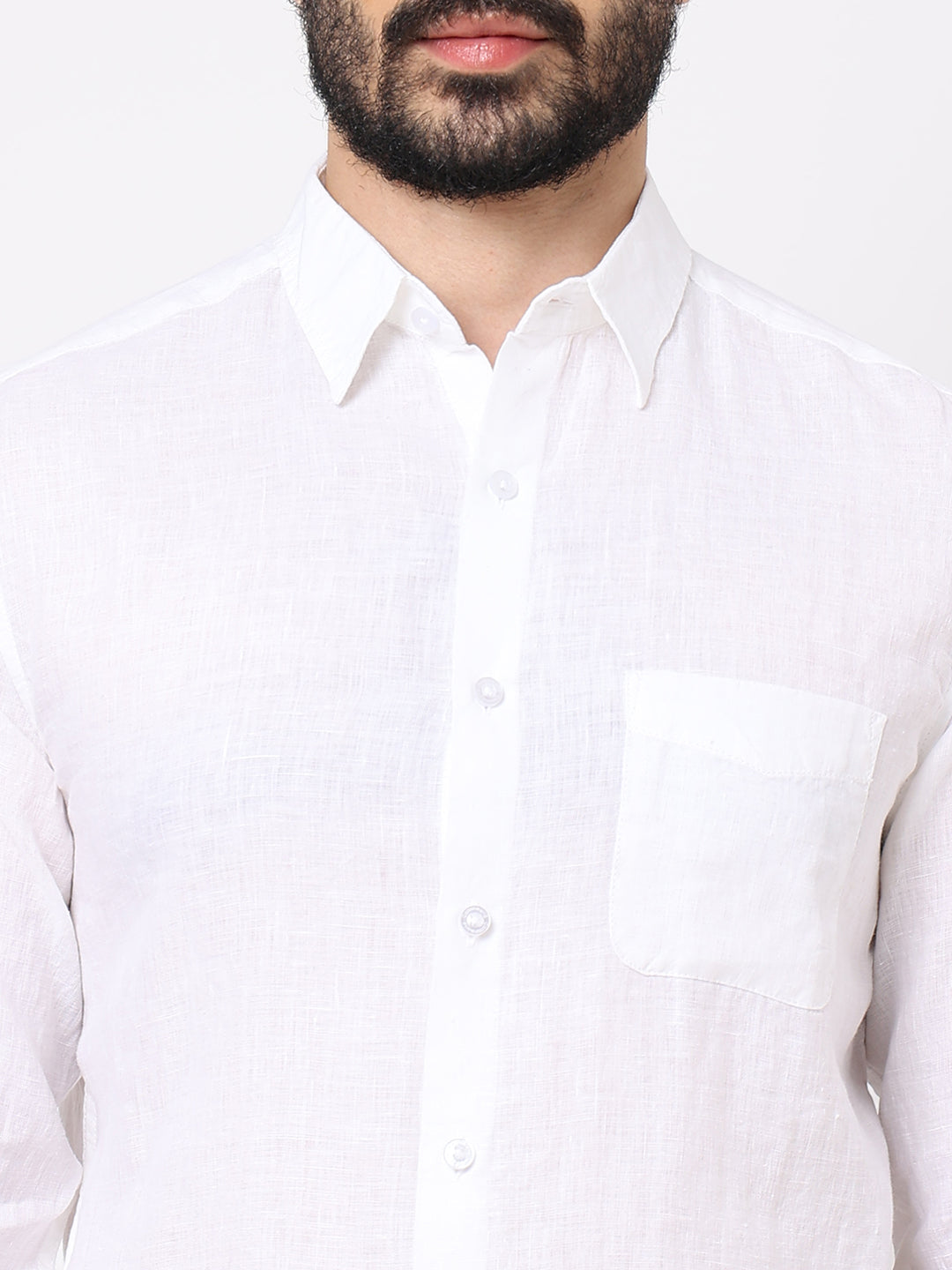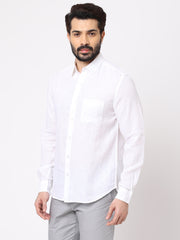 Men's White 100% Linen Regular Fit Shirt