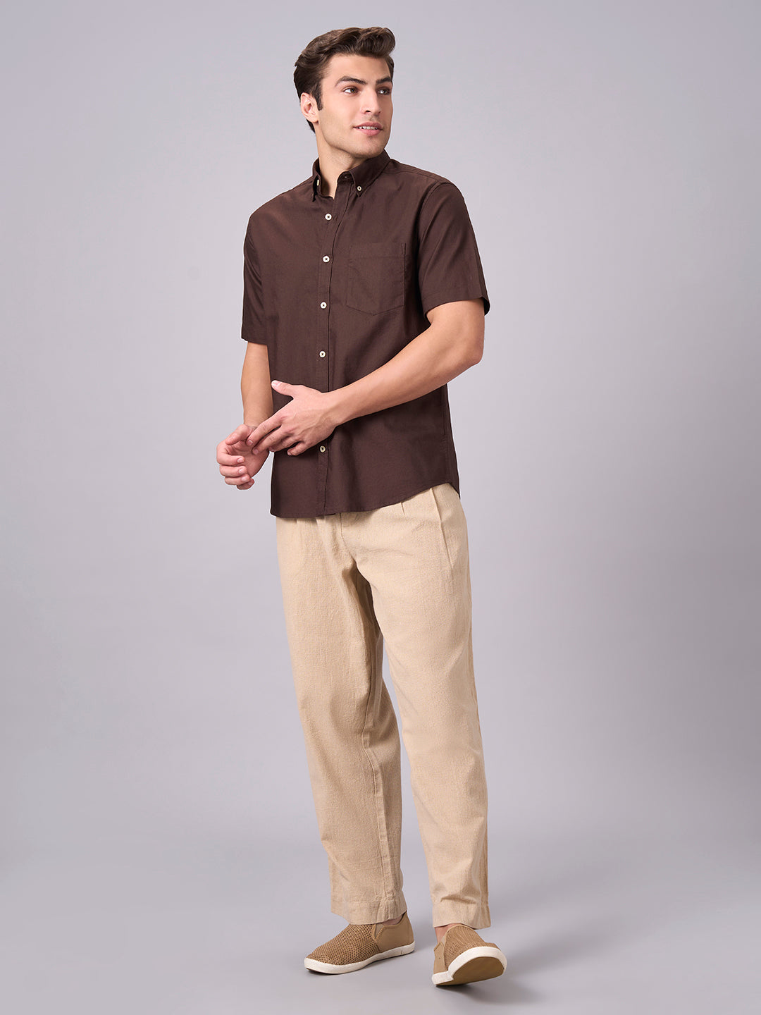 Men's Coffee 100% Cotton Regular Fit Shirt