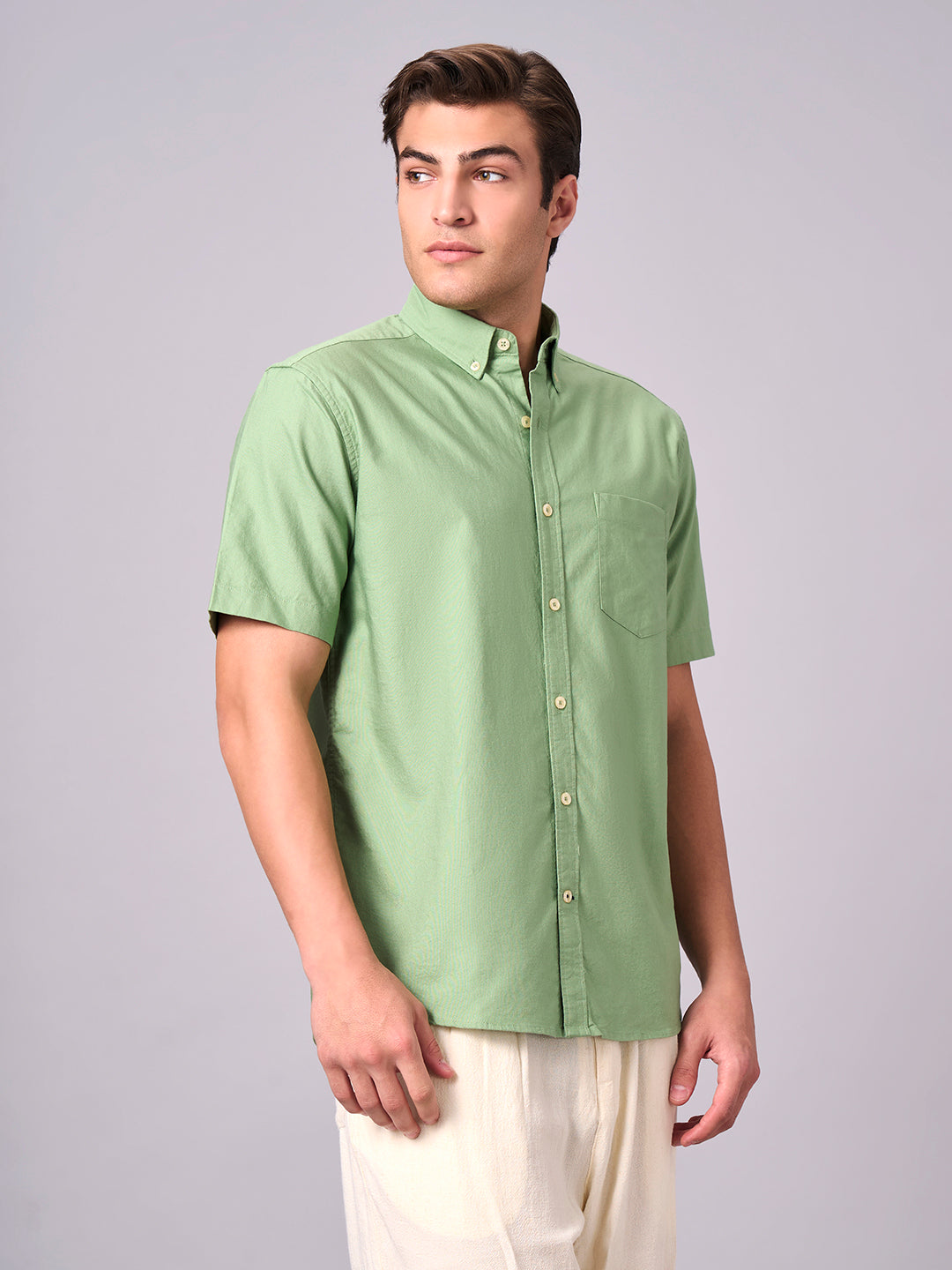 Men's Green 100% Cotton Regular Fit Shirt