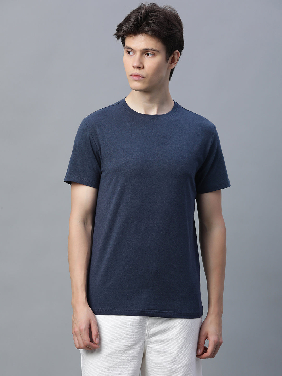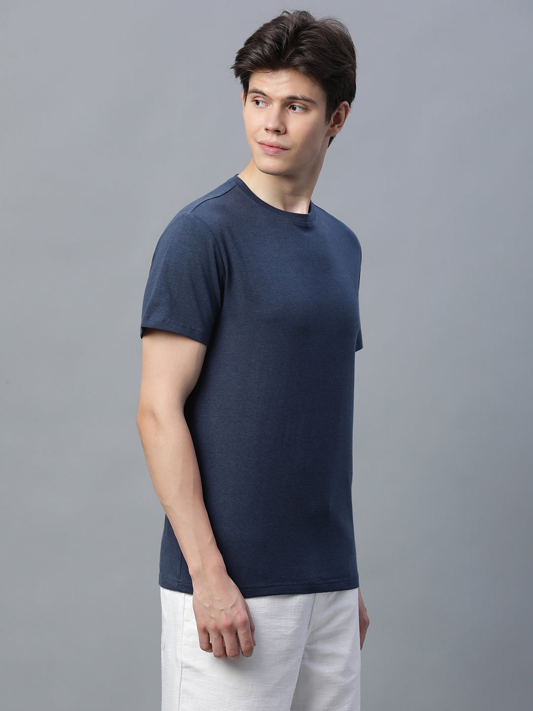 Men's Navy Cotton Bamboo Elastane Regular Fit Tshirt