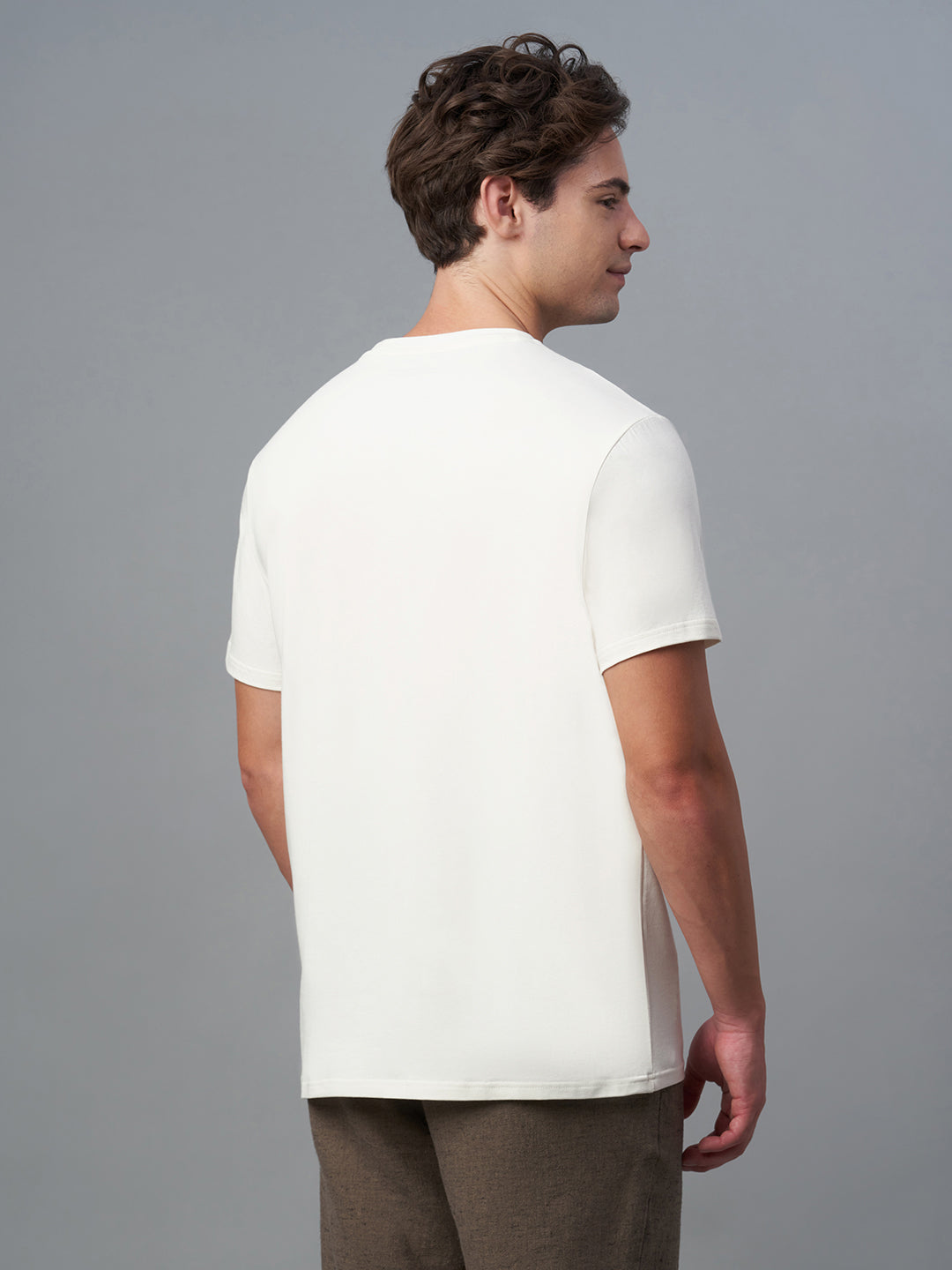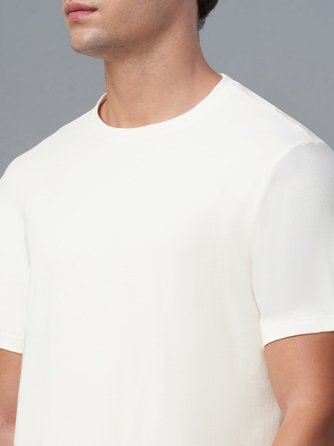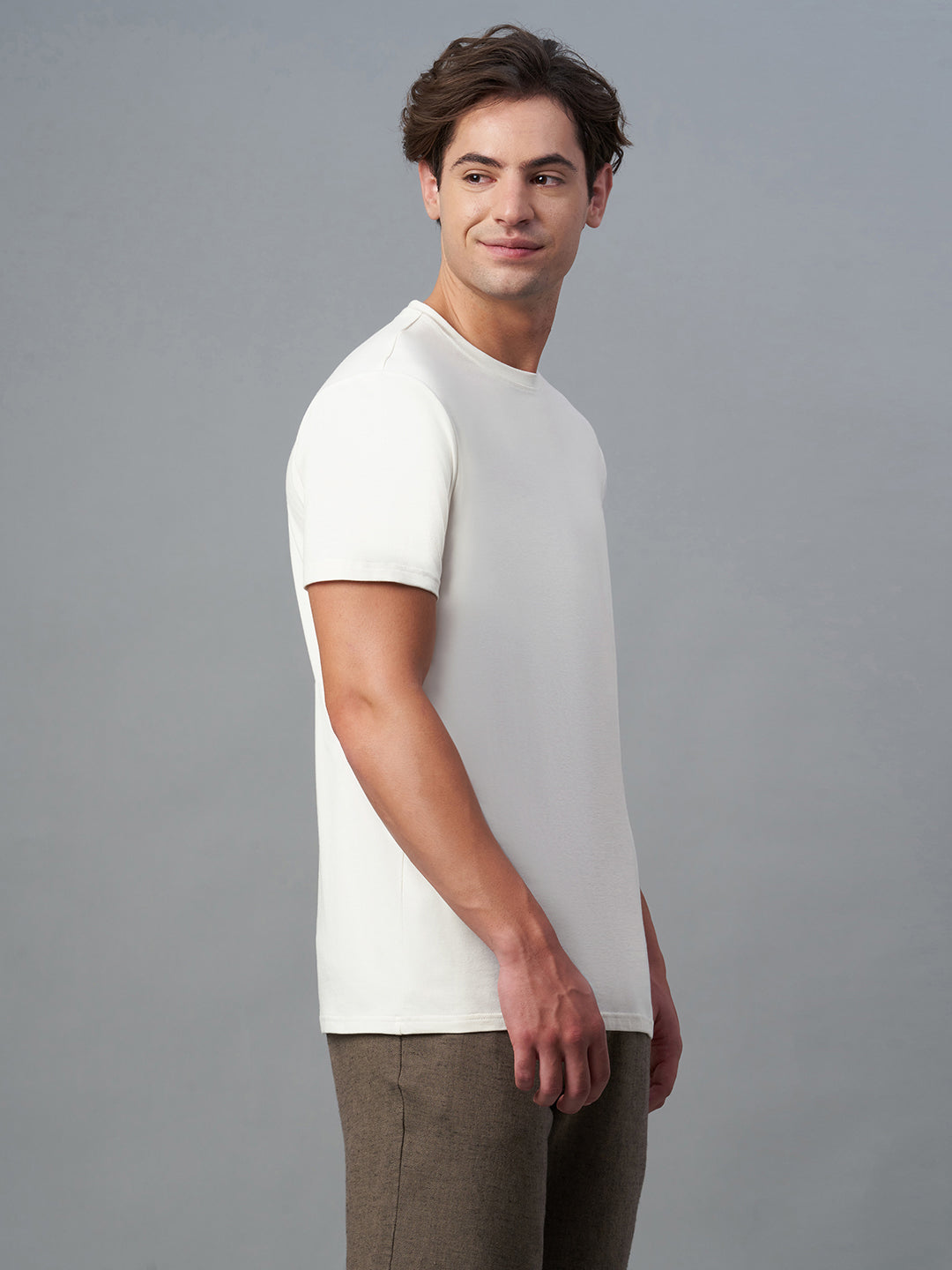Men's Offwhite Cotton Bamboo Elastane Regular Fit Tshirt