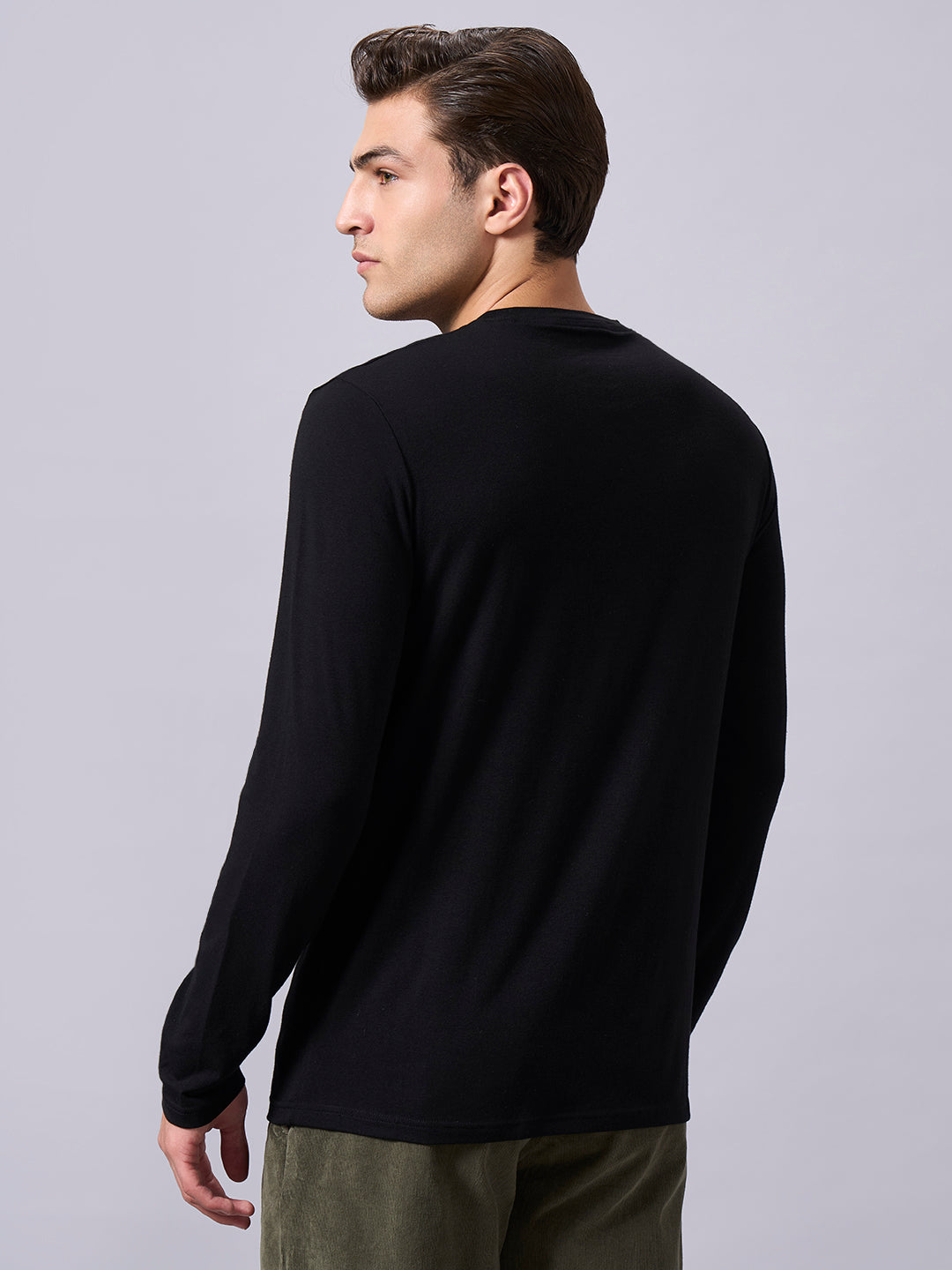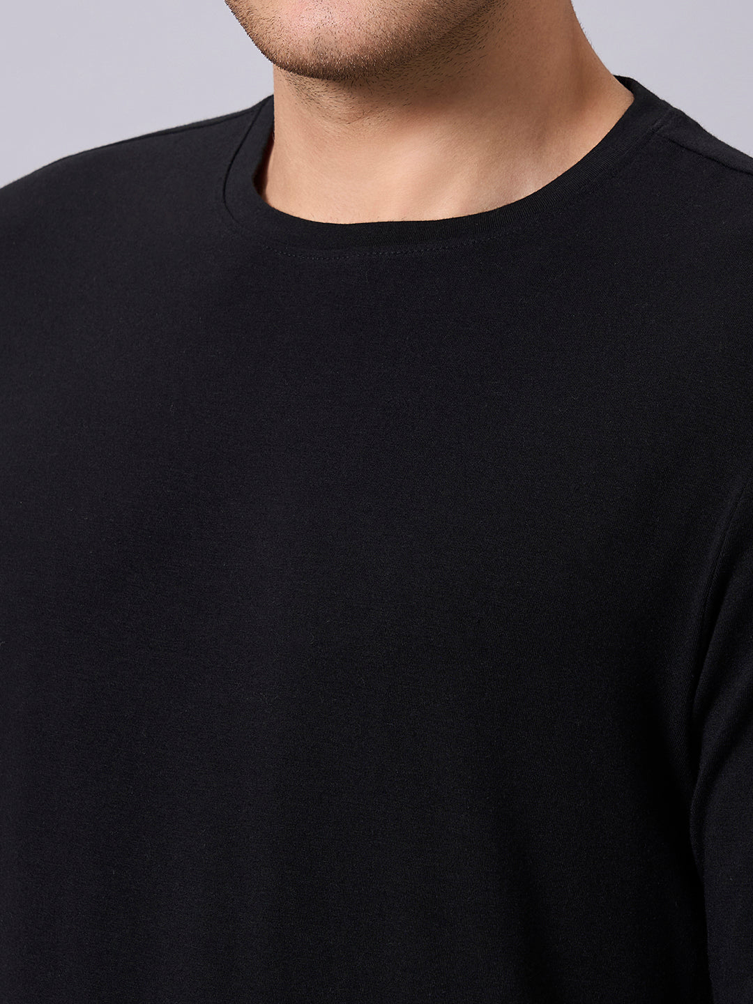 Men's Black Cotton Bamboo Elastane Regular Fit Tshirt